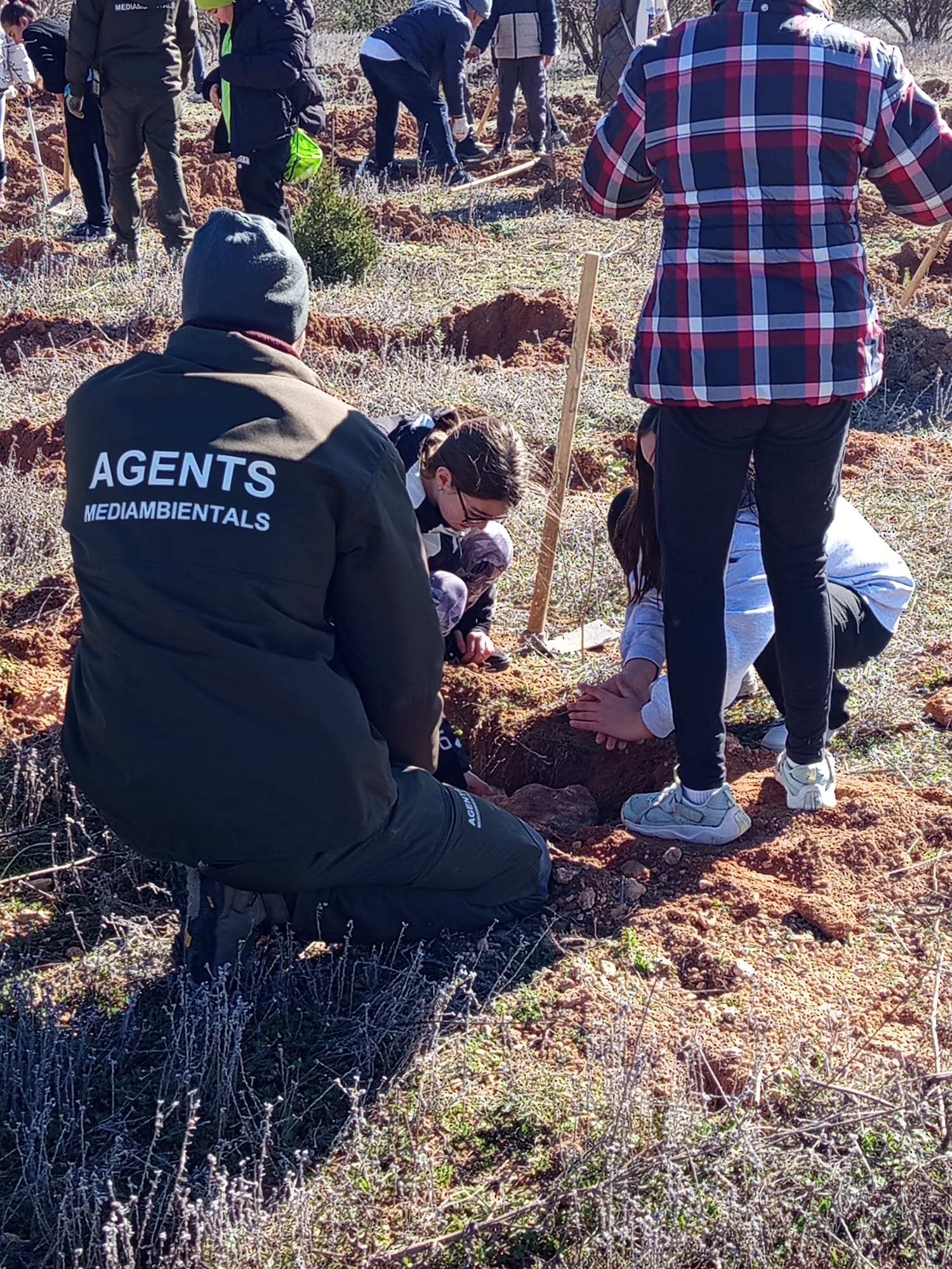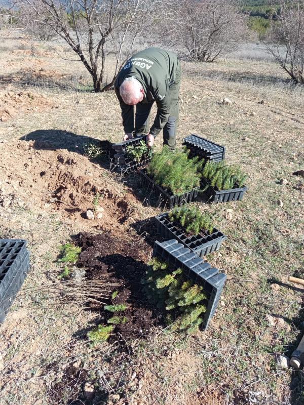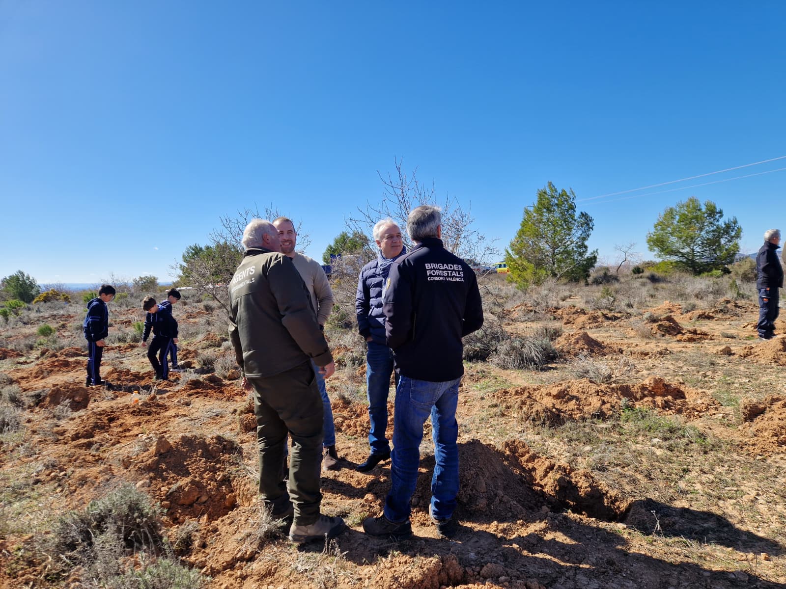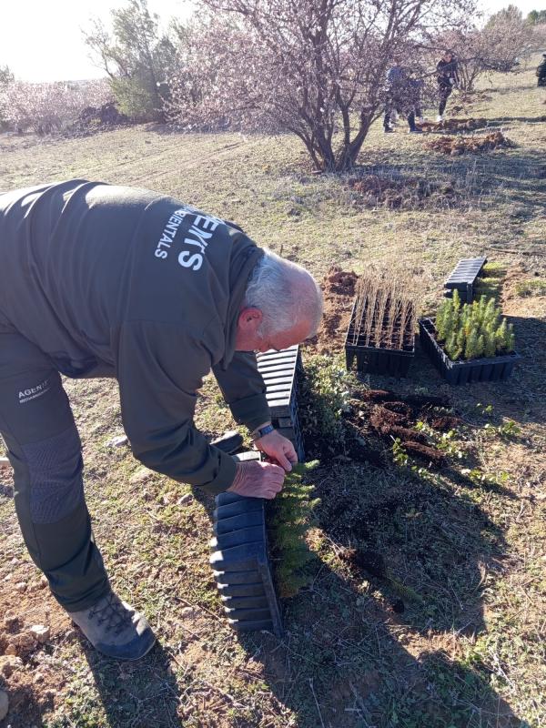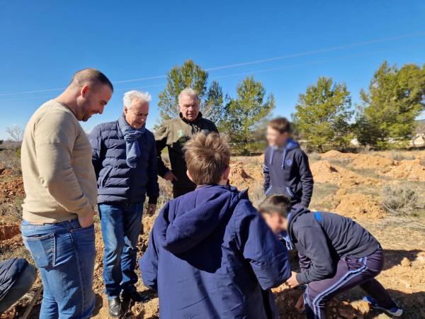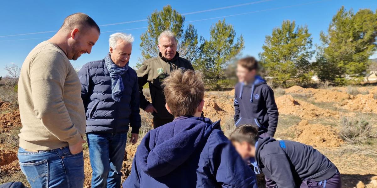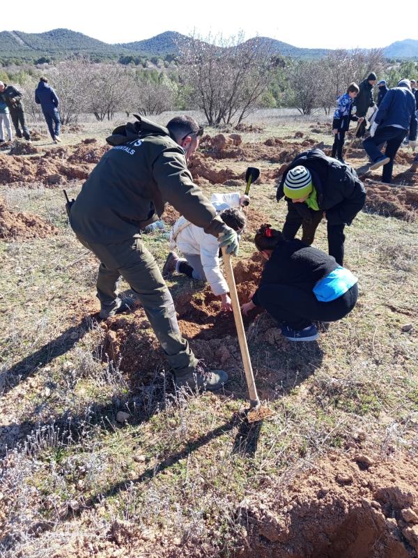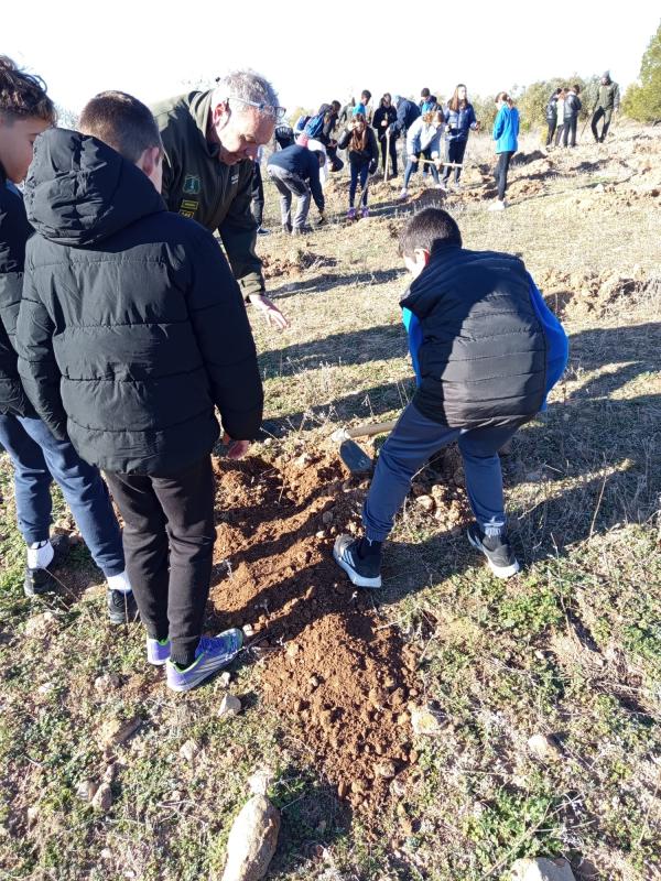 Agentes forestales de Utiel y comarca han dirigido la actividad y han guiado a los estudiantes en las labores de reforestación de 800 árboles (pinos, carrascas, fresnos, quejillos…) en el paraje Charco Olmillos, en plena Sierra del Negrete.
