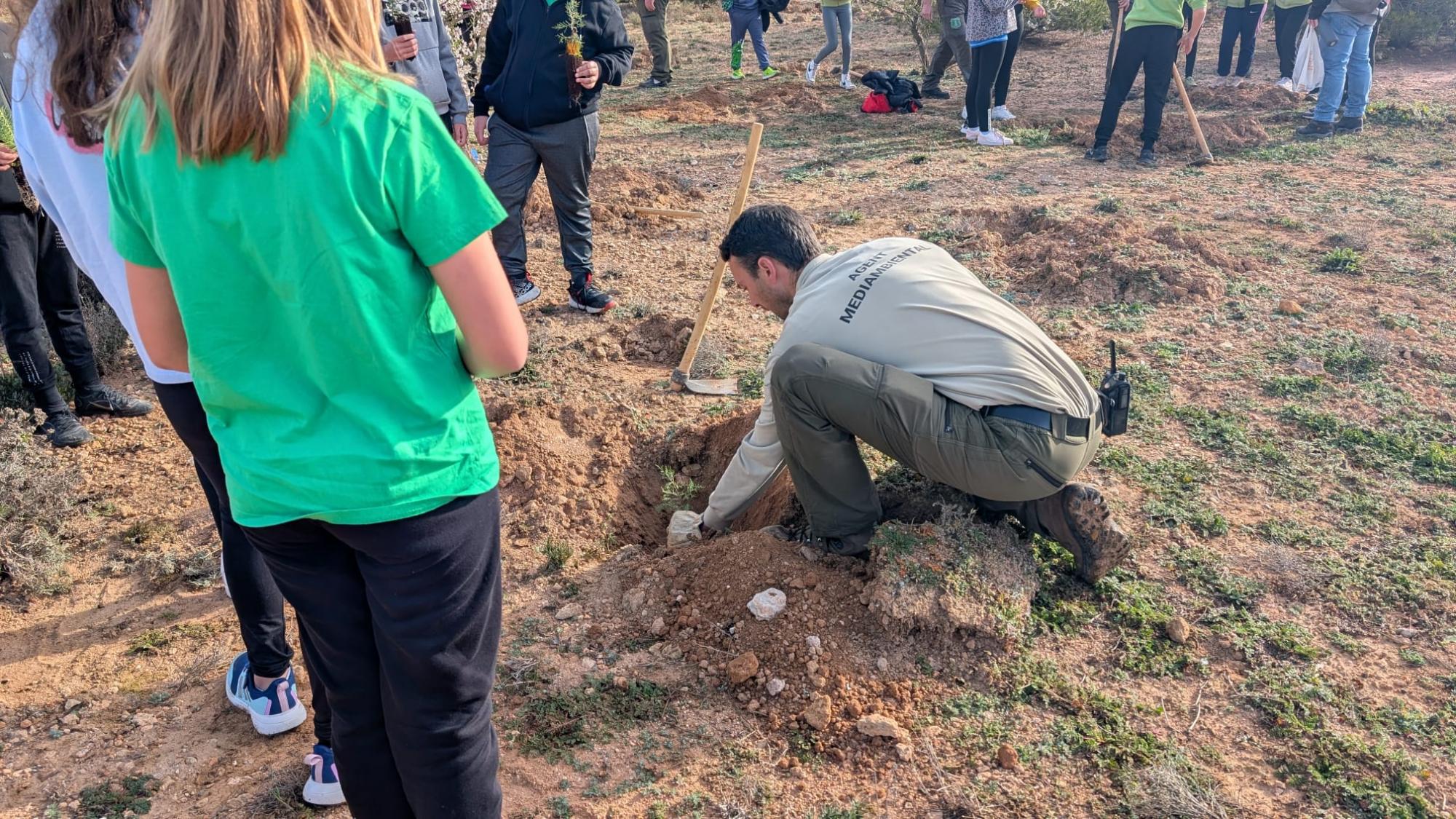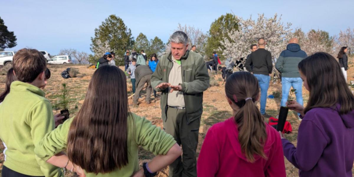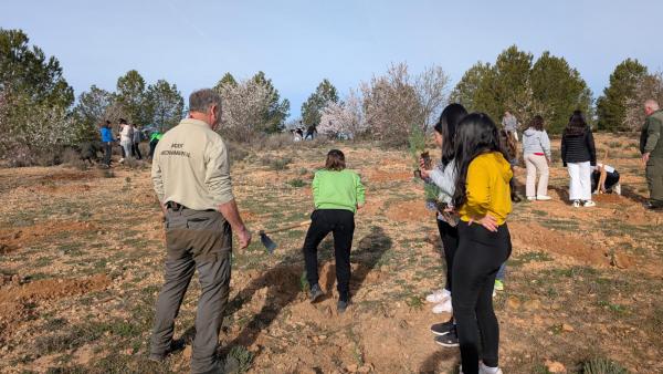 Esta mañana 180 alumnos y alumnas de Utiel y pedanías han protagonizado la plantación especial de pinos y carrascas en plena Sierra del Negrete con motivo de la celebración del Día del árbol. Alumnado de 6º de Primaria de los centros educativos Enrique Rambal, Canónigo Muñoz, Santa Ana y CRA Oleana (aularios de Las Cuevas y Las Casas) han participado en la plantación de 800 ejemplares de diferentes ejemplares de pino, carrasca, almeces, sabinas y fresno en el paraje Charco Olmillos.