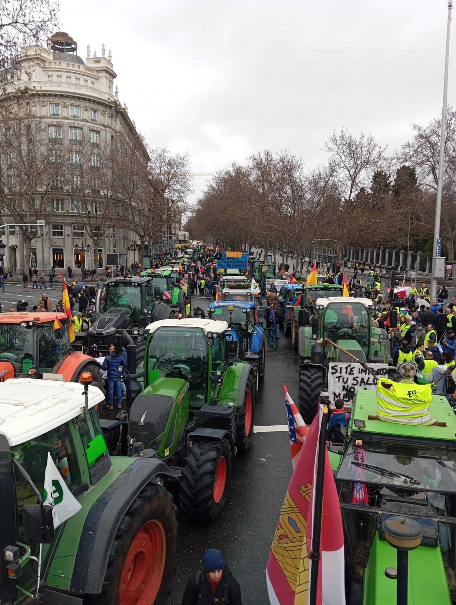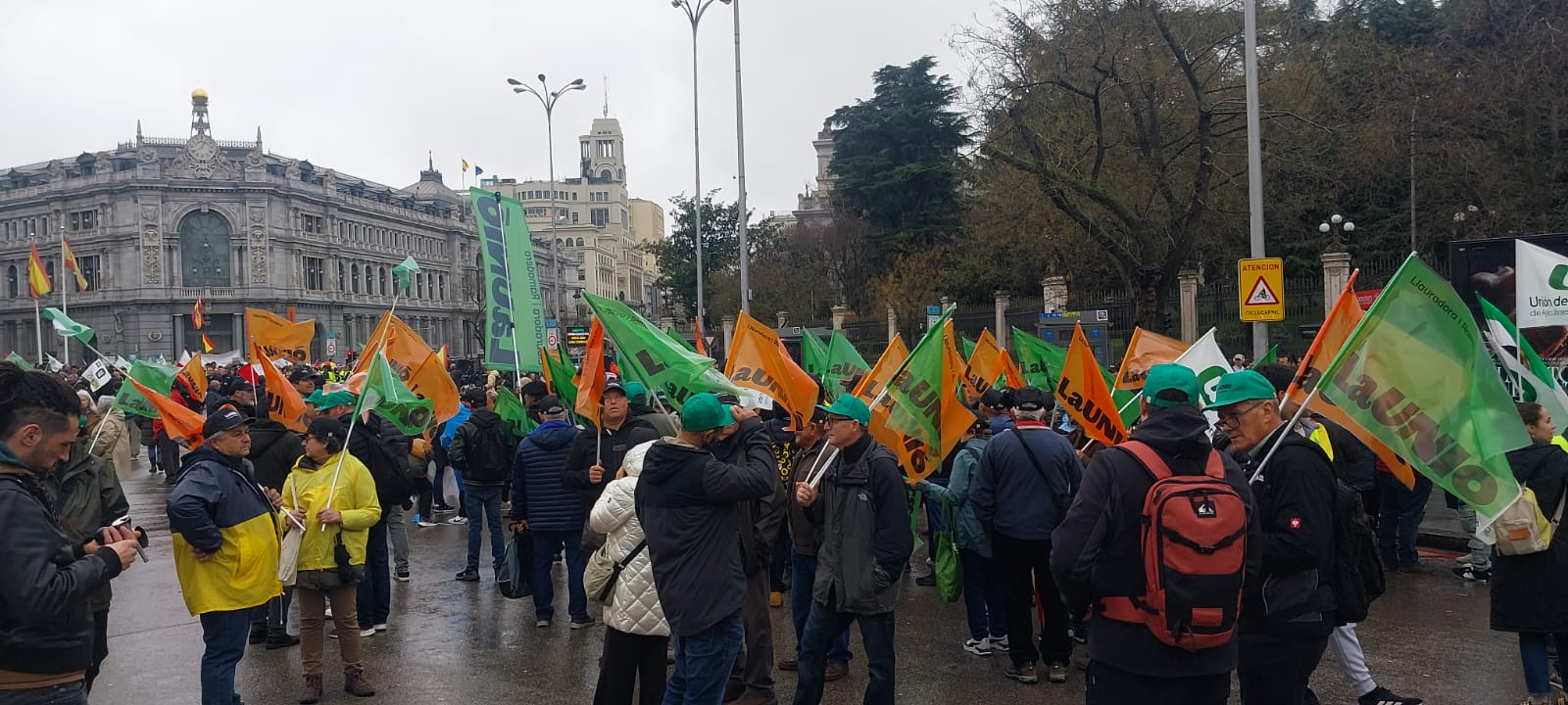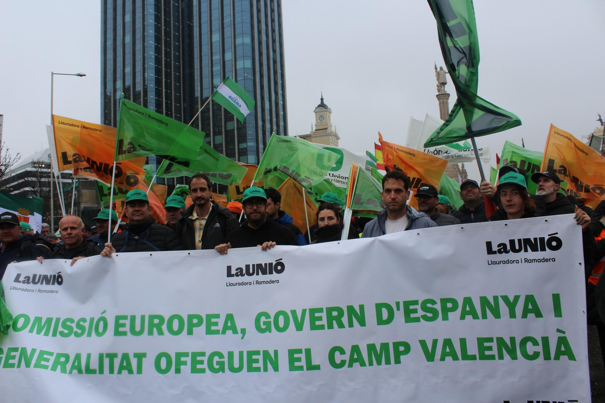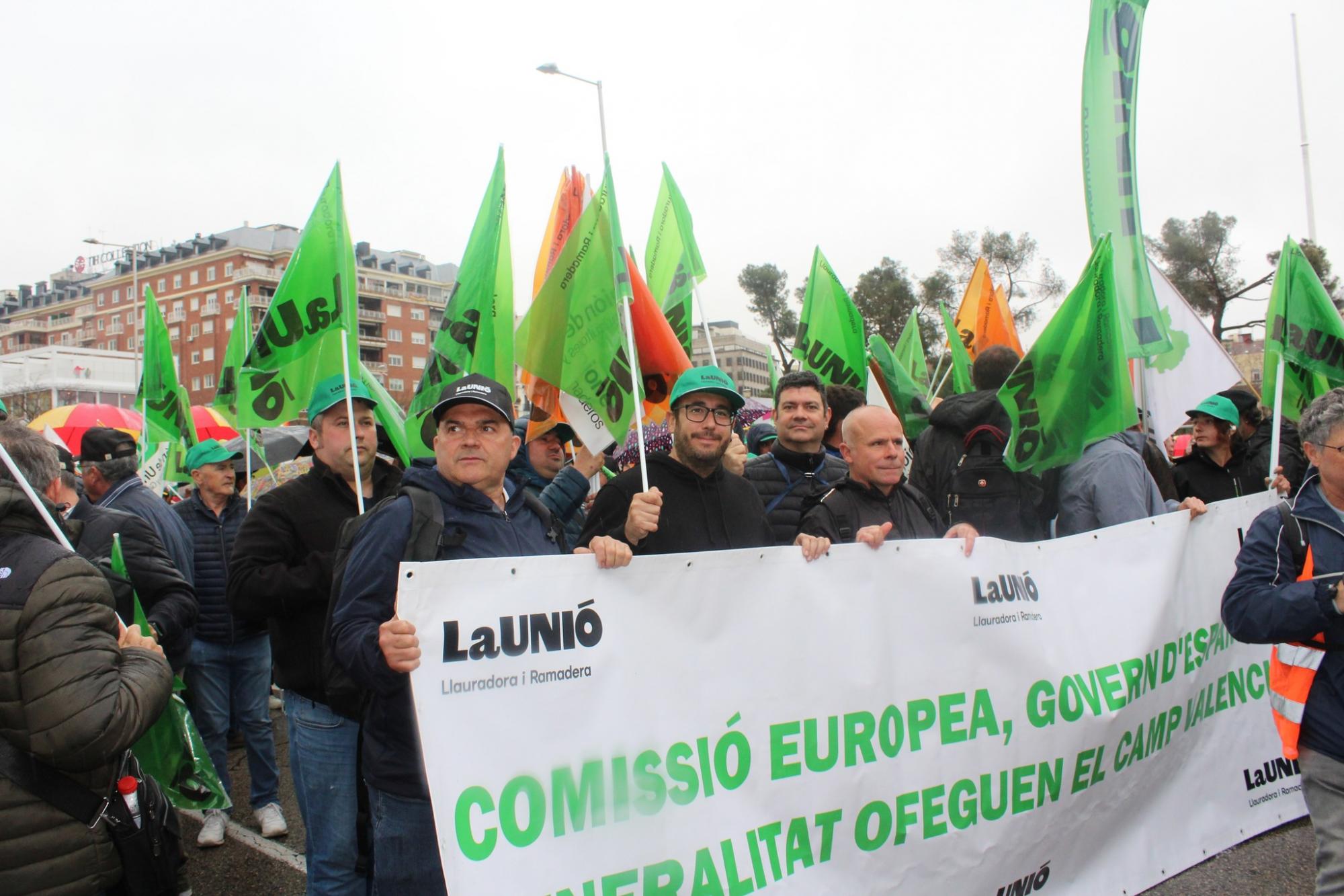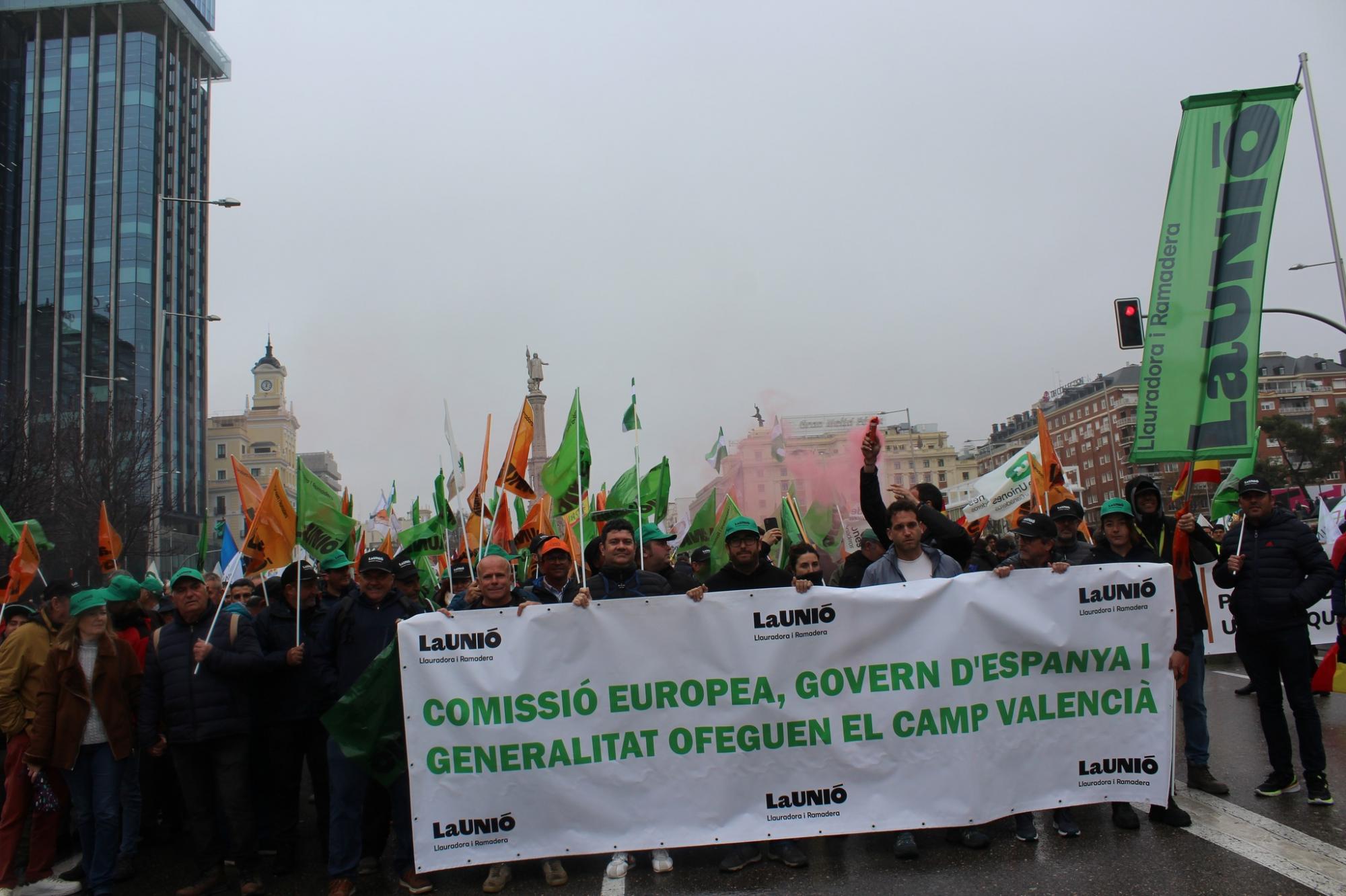Más de 440 agricultores y ganaderos de La Unió Llauradora i Ramadera y 10 tractores, procedentes de toda la Comunitat Valenciana, han participado hoy en Madrid, en la gran manifestación-tractorada del campo convocada por su organización estatal Unión de Uniones para reivindicar y poner el acento en las nefastas políticas agrarias de todas las Administraciones.