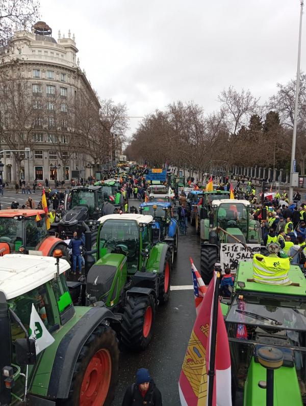 La delegación de LA UNIÓ ha partido esta pasada madrugada en autobús desde todas las comarcas de la Comunitat Valenciana (220 personas de las comarcas de Valencia, 110 de las de Alicante y otras 110 de las de Castellón). Los tractores salieron el martes en góndolas para unirse al resto de los de otras comunidades autónomas que han partido en cinco columnas hasta la entrada a Madrid. La organización preveía 1.500 tractores, pero una resolución gubernativa los dejó en 500.