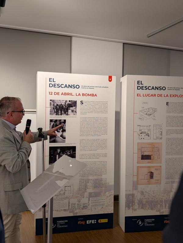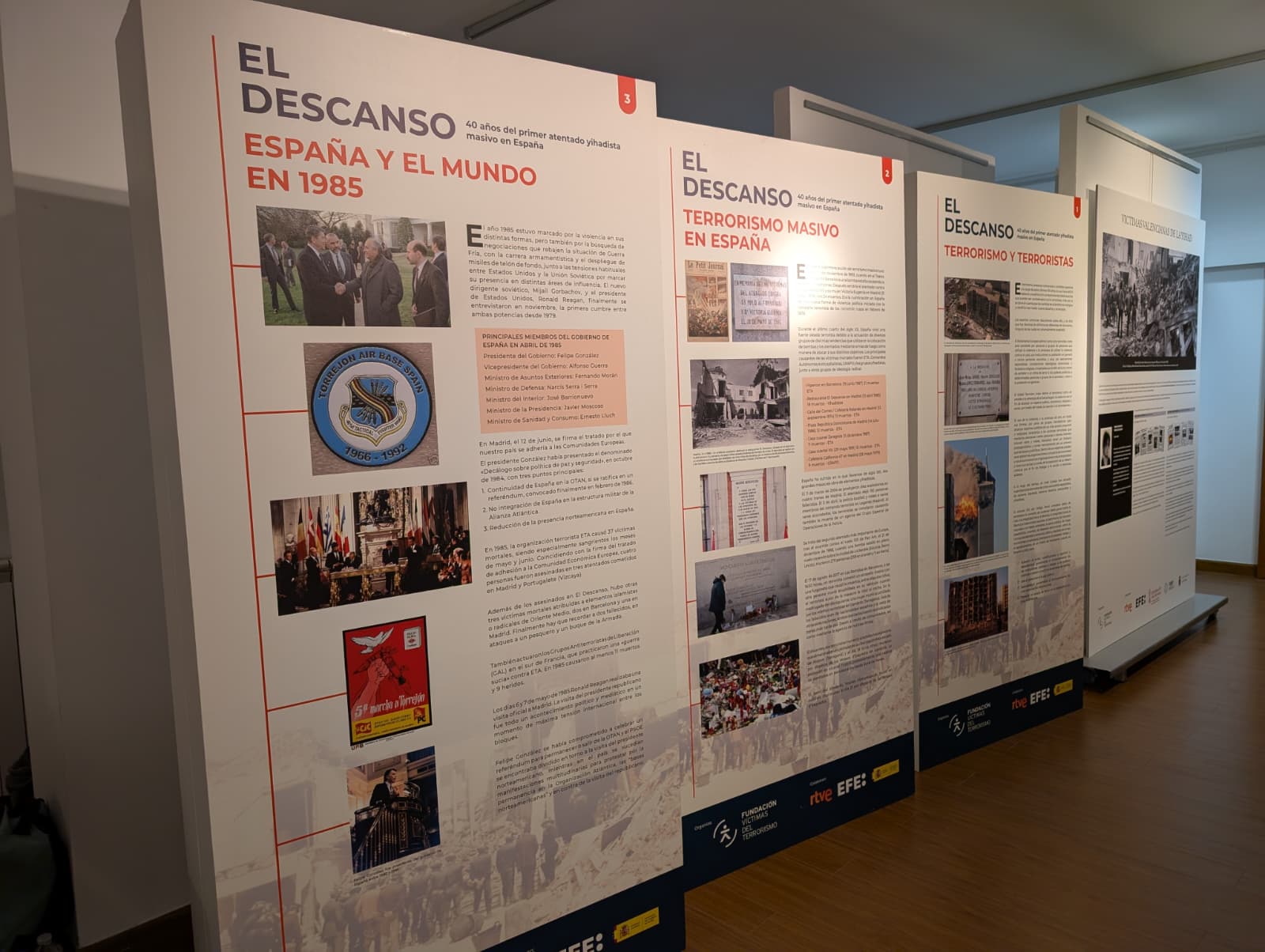 La exposición está formada por 12 paneles con fotografías de la Agencia EFE y otras cedidas por familiares de las víctimas de aquel atentado, a las que suman un podcast con testimonios y dos audiovisuales extraídos del archivo documental de RTVE. La muestra podrá visitarse hasta el próximo 28 de noviembre.