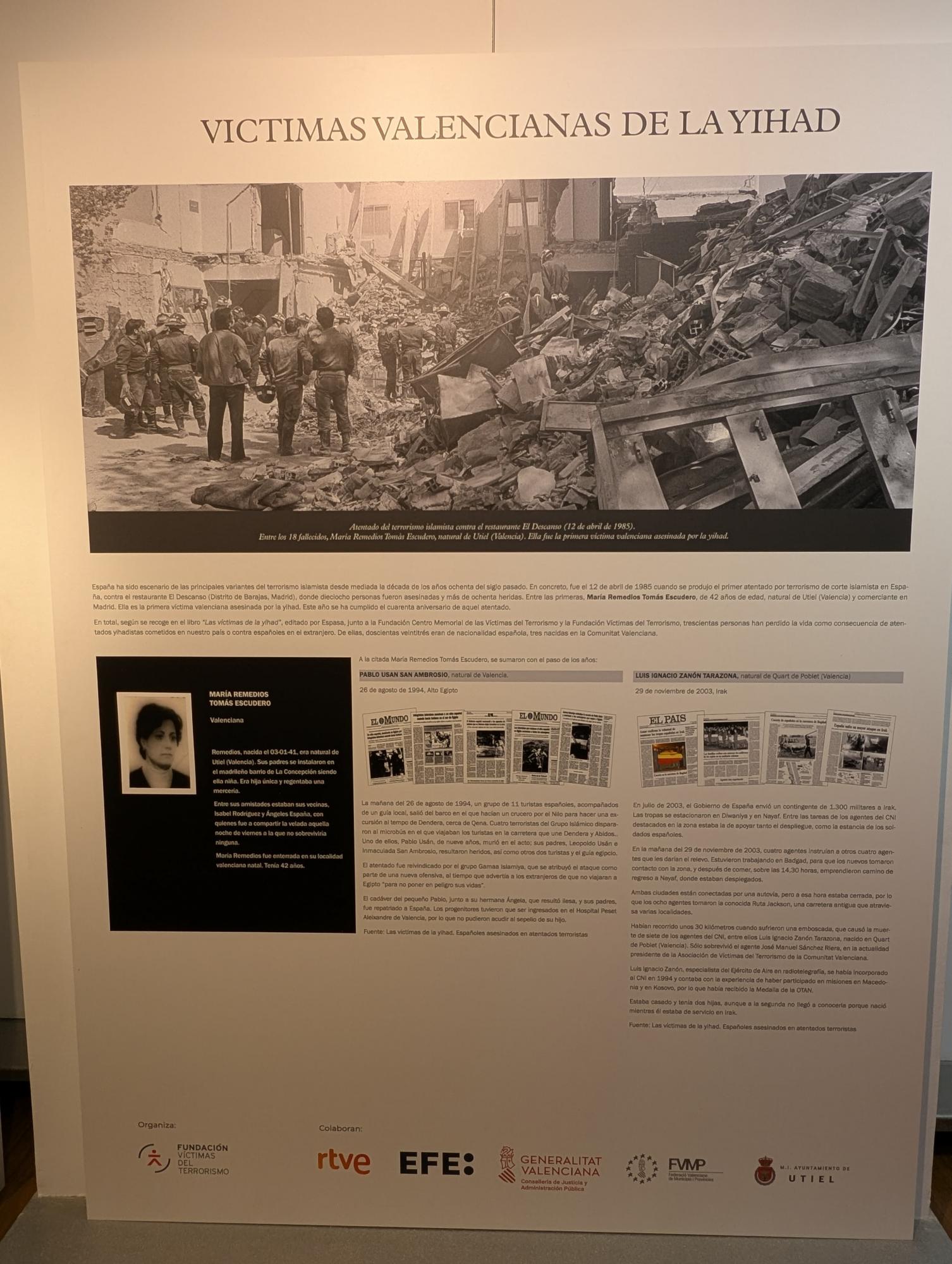 Ayer se inauguraba en la Casa de Cultura de Utiel la exposición “El Descanso, 40 años del primer atentado yihadista masivo en España” organizada por la Fundación Víctimas del Terrorismo en colaboración con el Ayuntamiento de Utiel, la Conselleria de Justicia y Administración Pública y la Federación Valenciana de Municipios y Provincias (FVMP)