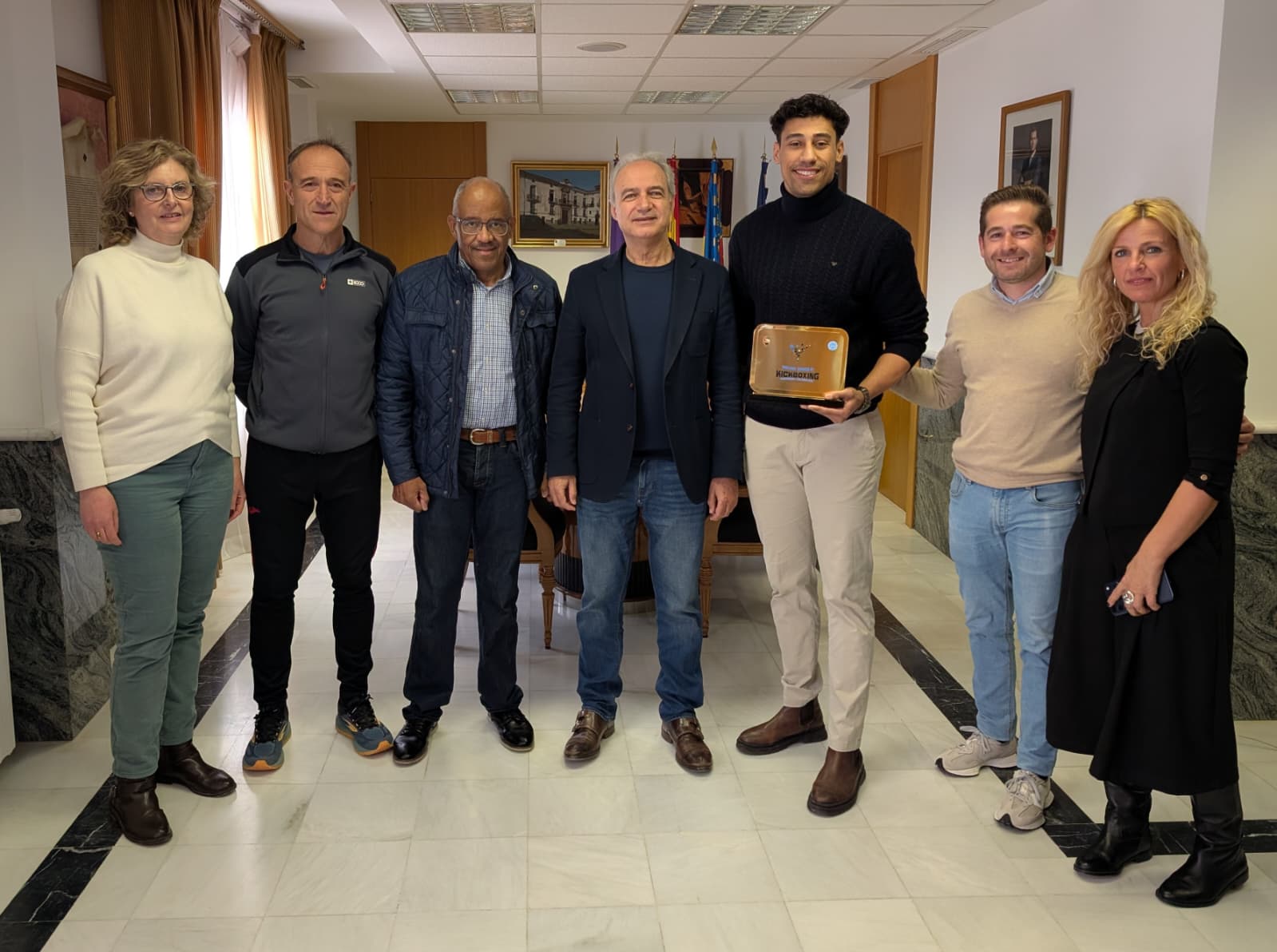 Kevin, acompañado de su entrenador y padre, Patrick Koffi, explicaron tanto al alcalde como al concejal de deportes y miembros de la corporación, los pormenores de esta competición internacional de gran calado.