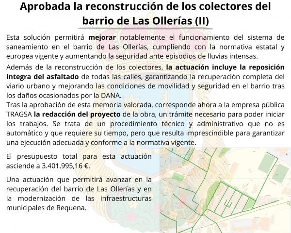 El Gobierno de España ha aprobado la memoria valorada, redactada por el Ayuntamiento para la reconstrucción de los colectores de aguas residuales del barrio de Las Ollerías, gravemente dañados como consecuencia de la DANA.