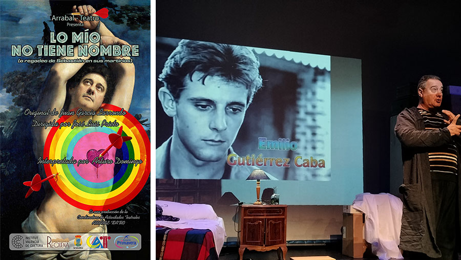 En palabras de Juan Gª Larrondo, autor del texto premiado: “Lo mío no tiene nombre” es el soliloquio nocturno y melodramático de un apuntador de teatro, jubilado, que regresa a su pueblo natal -del que tuvo que huir, cuarenta años atrás, marginado por su “desorientación” sexual- para ser condecorado por el Ayuntamiento con la medalla de «hijo predilecto» tras el cambio de mentalidad y el progreso de los tiempos. Insomne por los nervios previos al acontecimiento, esa noche, el único personaje real de este monólogo, Sebastián, comparte con sus fantasmas del pasado, del presente y con la peculiar escultura paganizada del santo homónimo que le acompaña, los recuerdos de su infancia, de su juventud -marcada durante años por el rechazo- y también los de su oficio en el Teatro: Remembranzas de una vida condicionada por el miedo y la vergüenza, en la que, a menudo, casi siempre trató de pasar desapercibido, alejado de los focos, anónimo para evitar ser por ningún dedo señalado y definitivamente sin nombre. Quizás porque ya se ocuparon los demás de imponérselo a la fuerza o porque tampoco él fue jamás capaz de reconocerse entre sus letras…