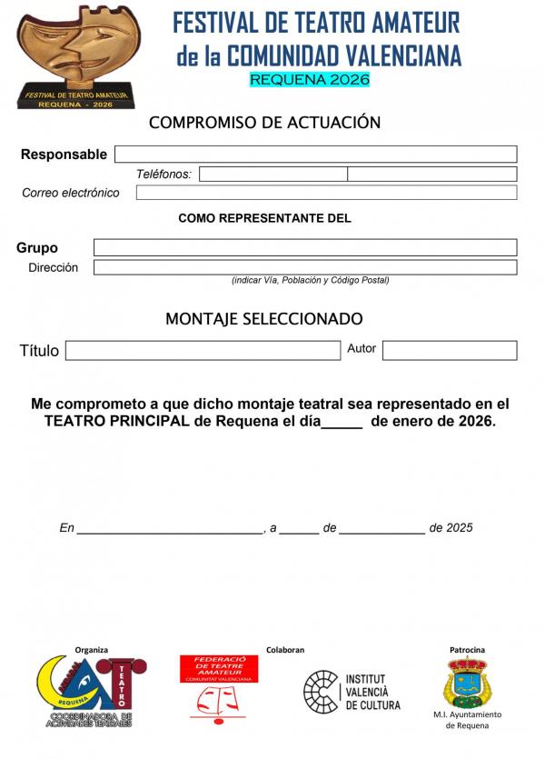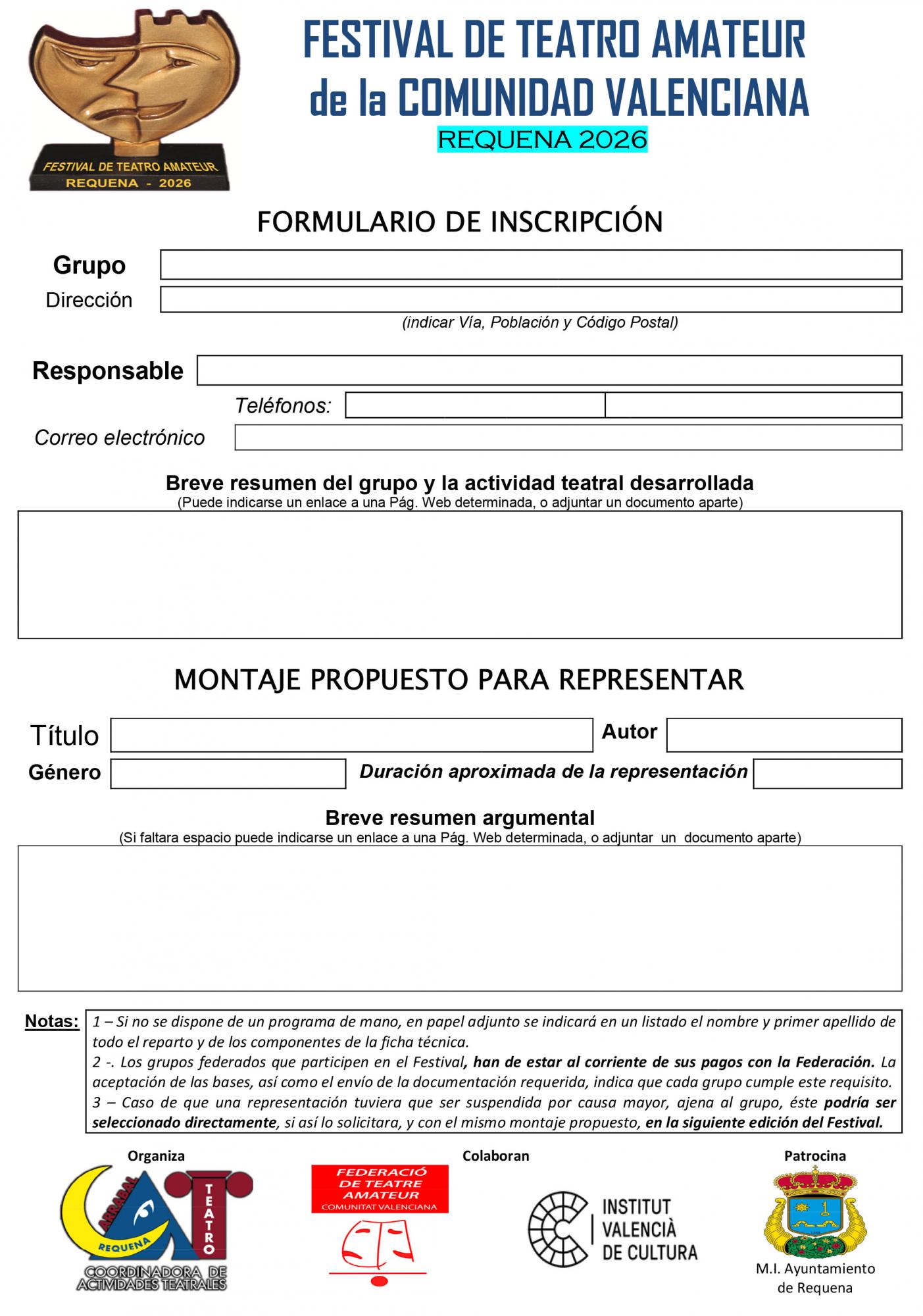 12ª.- La participación en el Festival de Teatro Amateur – Requena 2026, significa la plena aceptación de estas BASES.