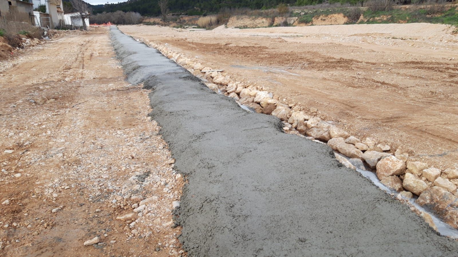 Ya se han completado el muro de escollera, el cauce de aguas bajas anexo y el camino del trasdós, pendiente únicamente de pequeños detalles.
