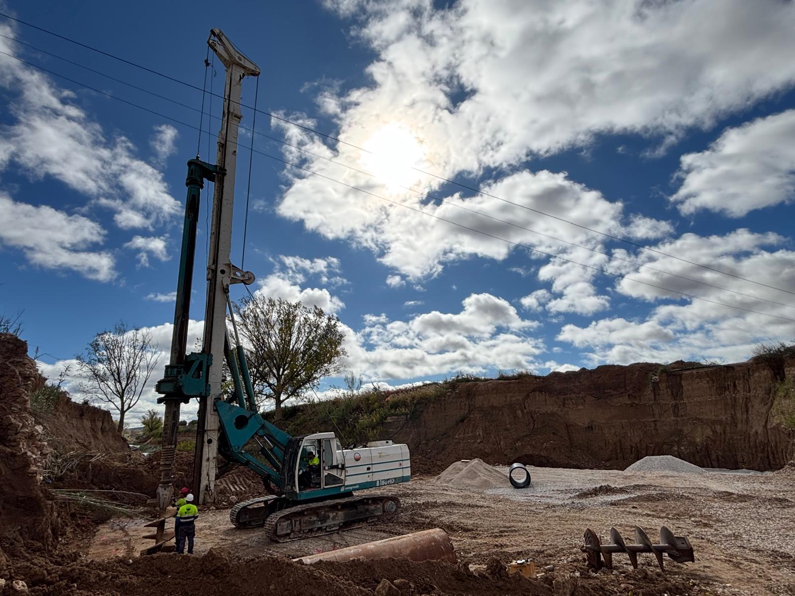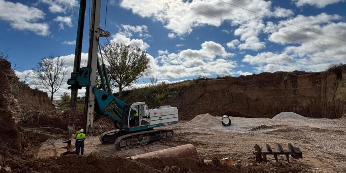 Tras la demolición del estribo existente y los trabajos de preparación del cauce del río, ya se encuentra operativa la maquinaria especializada que ejecutará los pilotes sobre los que se asentará la cimentación del nuevo puente. Estos pilotes son un elemento fundamental de la estructura, ya que permitirán garantizar la estabilidad y durabilidad de la infraestructura frente a las crecidas del río.