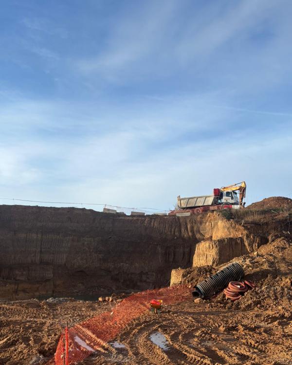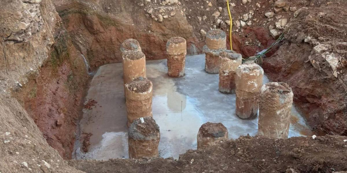 Actualmente, ya se ha ejecutado el hormigón de limpieza de las cimentaciones, y se va a continuar con el descabezado de pilotes y la realización de ensayos crosshole, una prueba geofísica no destructiva que permite evaluar la integridad y calidad del hormigón en cimentaciones profundas