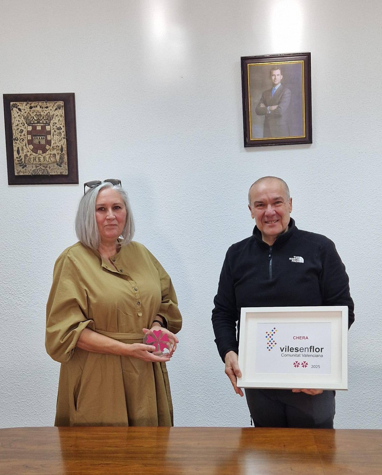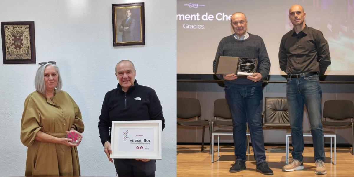 El primero de ellos corresponde al programa “Viles en Flor 2025”, que ha distinguido a Chera por el cuidado y la puesta en valor de los jardines de la Iglesia y la calle San Vicente, destacando su contribución a la mejora del entorno urbano y la calidad paisajística del municipio.