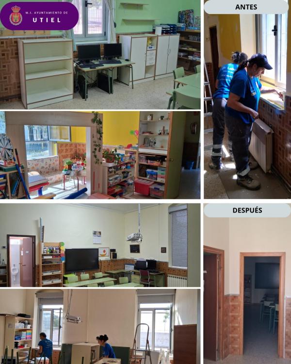 El Ayuntamiento de Utiel está realizando trabajos de acondicionamiento en el colegio de la pedanía de Las Cuevas para adecuar las instalaciones durante este periodo de vacaciones estivales y preparar la apertura del nuevo curso con un aulario renovado.