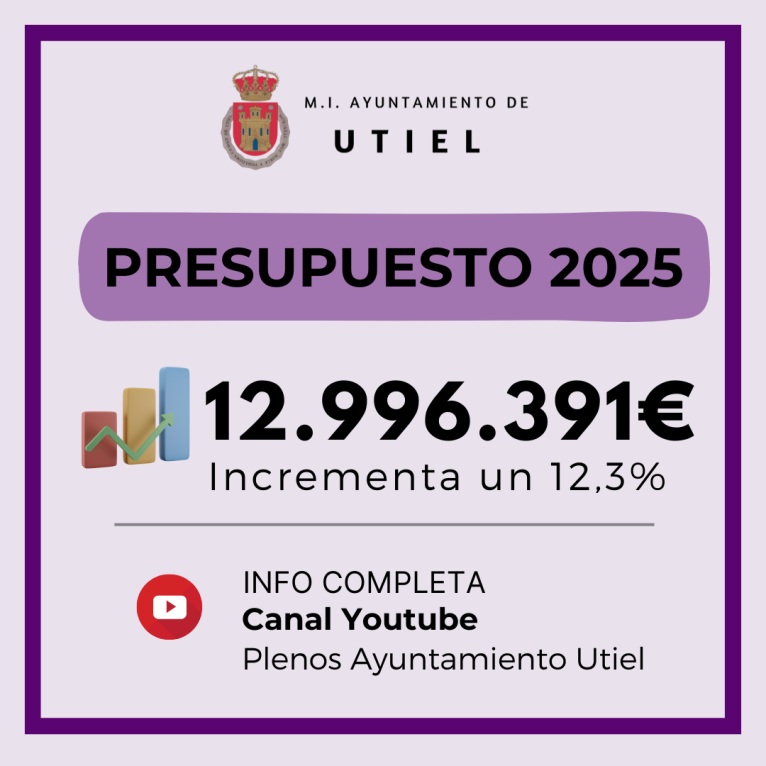 Ayer el Ayuntamiento de Utiel aprobaba en sesión ordinaria de pleno el presupuesto municipal del ejercicio 2025 .