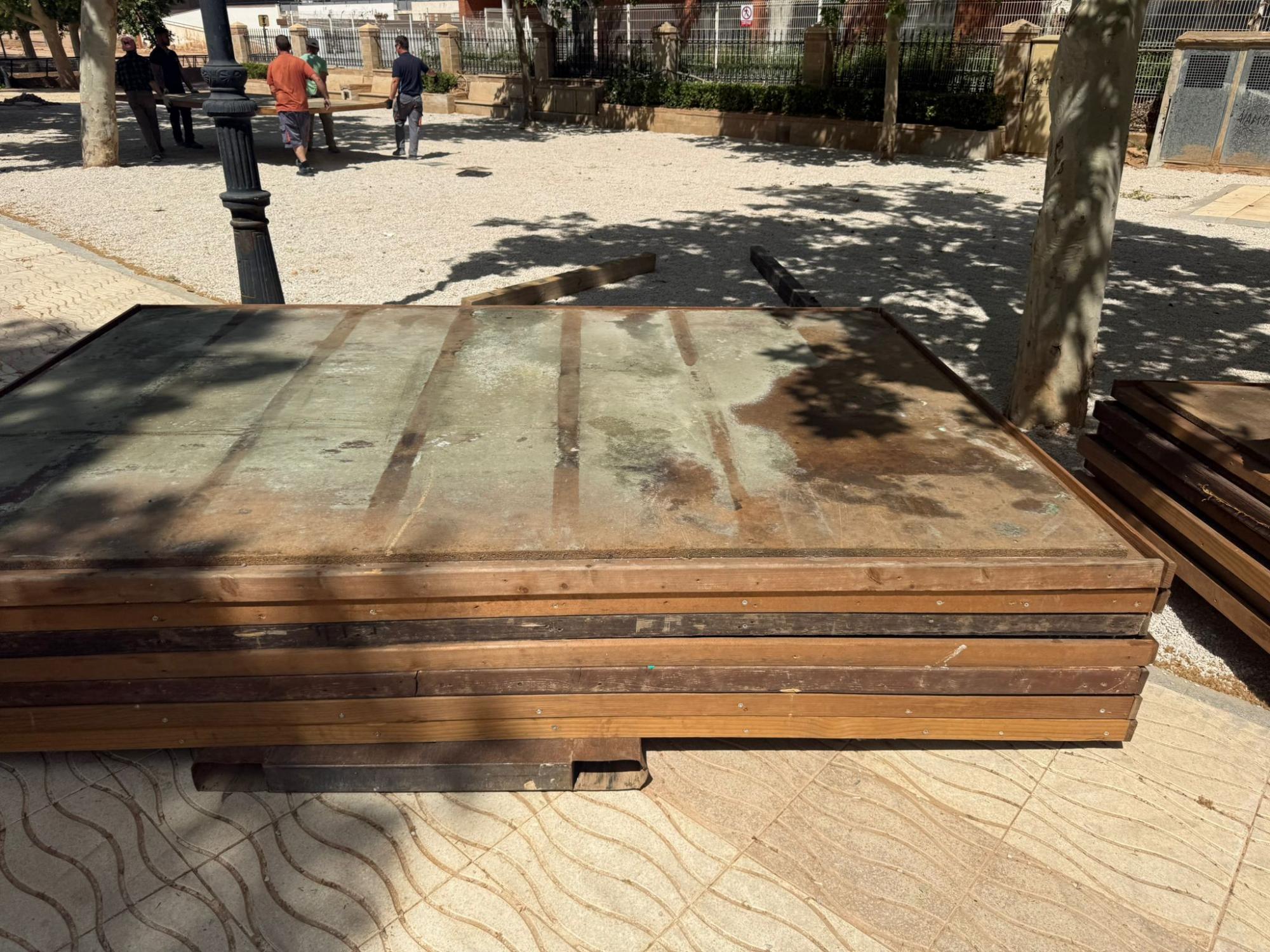 Labores de acondicionamiento que se están ejecutando con celeridad tanto en el paseo como en la prolongación de las carpas para que esta zona privilegiada de encuentro y convivencia esté habilitada en el periodo estival y de cara a la tradicional Feria y Fiestas de Utiel.