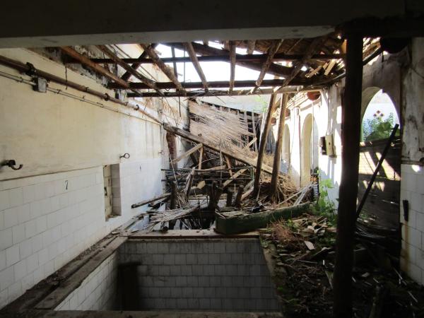 Aunque la estructura en su conjunto se encuentra en un estado relativamente bueno, el abandono de su uso funcional en las últimas tres décadas ha comenzado a generar efectos. Las cubiertas de todas las estructuras presentan humedades y filtraciones graves. En la zona de los descargaderos, la cubierta se ha desplomado completamente. El patio está cubierto por vegetación y, en líneas generales, el edificio está descuidado en cuanto a su conservación.