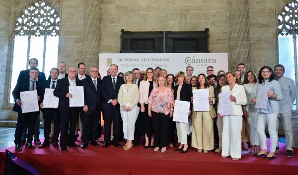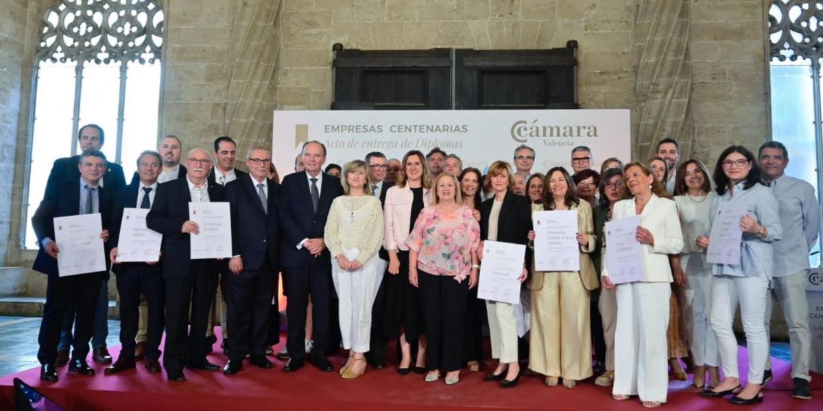 Cámara Valencia y el Ayuntamiento de Valencia hicieron un homenaje ayer jueves, 22 de mayo de 2025, a veintiséis empresas de la provincia con una trayectoria centenaria.