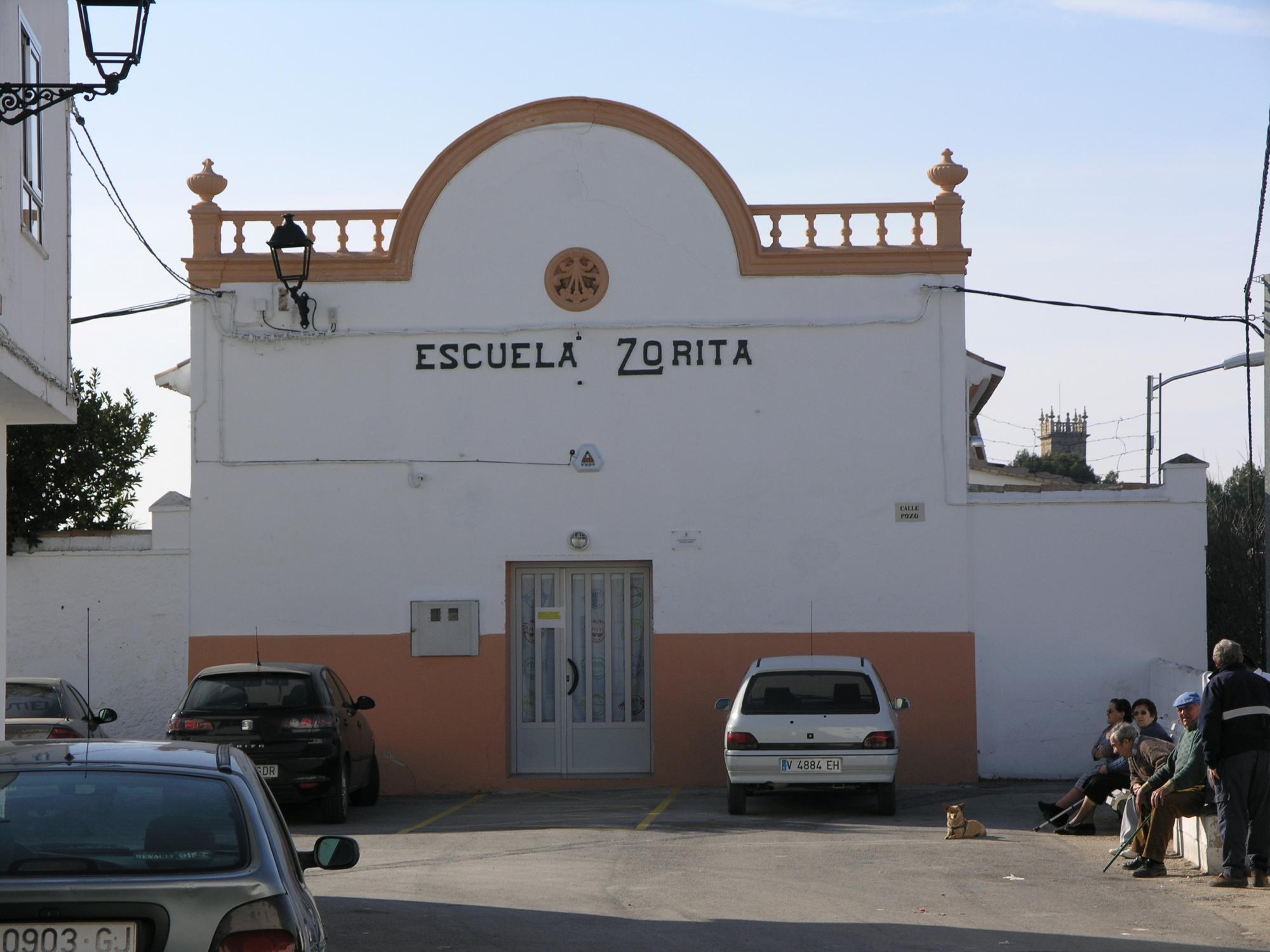 Durante este viaje diario a pie en columna, la tribu de niños peñeros mostraba un aspecto y vestimenta que delataban su origen humilde, lo cual los hacía blanco de los improperios de los recatados habitantes del barrio Arrabal. Vista la inoperancia del Ayuntamiento de Requena, Zorita comienza a promover una comisión de ciudadanos con el fin de recabar el apoyo económico que necesitan las obras de una nueva escuela en el solar del pozo de la nieve (actual calle Pozo). Las obras comienzan a mediados de 1924. pero se vieron paralizadas constantemente por la falta de crédito y de jornales por parte de los vecinos. A finales de año se retomaron las obras al asumirlas el propio Ayuntamiento, obras que estuvieron listas probablemente para otoño de 1925. Por desgracia, el maestro Zorita no pudo ver concluida su obra, puesto que falleció el 28 de febrero de 1925 víctima de un fallo cardiaco. El Ayuntamiento de Requena no dudó entonces en apresurarse para rotular con su nombre la nueva escuela de Requena, la primera en construirse desde el siglo XVII en la ciudad y la primera en la historia requenenses en recibir el nombre de una personalidad de la educación. Con ello, el consistorio quiso homenajear a este gran maestro, porque a pesar de vivir en nuestra ciudad tan solo tres años, dejó una huella profunda en Requena y sobre todo, en sus alumnos.