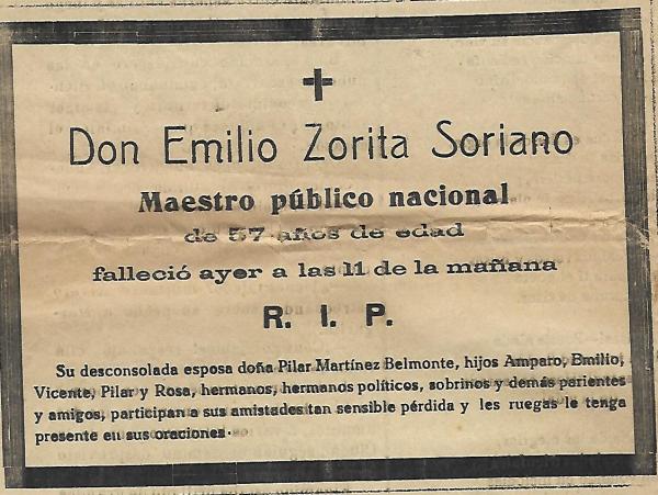 Se cumplen cien años de la construcción de la Escuela Zorita (1925) en el barrio popular requenense de Las Peñas. El centro docente recibió el nombre del maestro Emilio Zorita, principal impulsor de la obra, fallecido poco antes de finalizar la obra. Zorita fue un maestro emprendedor e innovador que estuvo en contacto con la corriente regeneracionista y la renovación pedagógica de la «Escuela Nueva». Sus escritos son un escaparate de las ideas de Costa, Cossío y Giner de los Ríos. A través de sus columnas en revistas y prensa reconocemos a un maestro que está comprometido con la misión de servir a su patria dándoles a las nuevas generaciones una educación de primera calidad basada en las nuevas corrientes pedagógicas que llegaban de Europa. El maestro fue asiduo colaborador de revistas como La Escuela Moderna, La Escuela o Magisterio Conquense, así como en la prensa generalista, donde vertía sus ideas, opiniones y propuestas para cambiar la educación española.