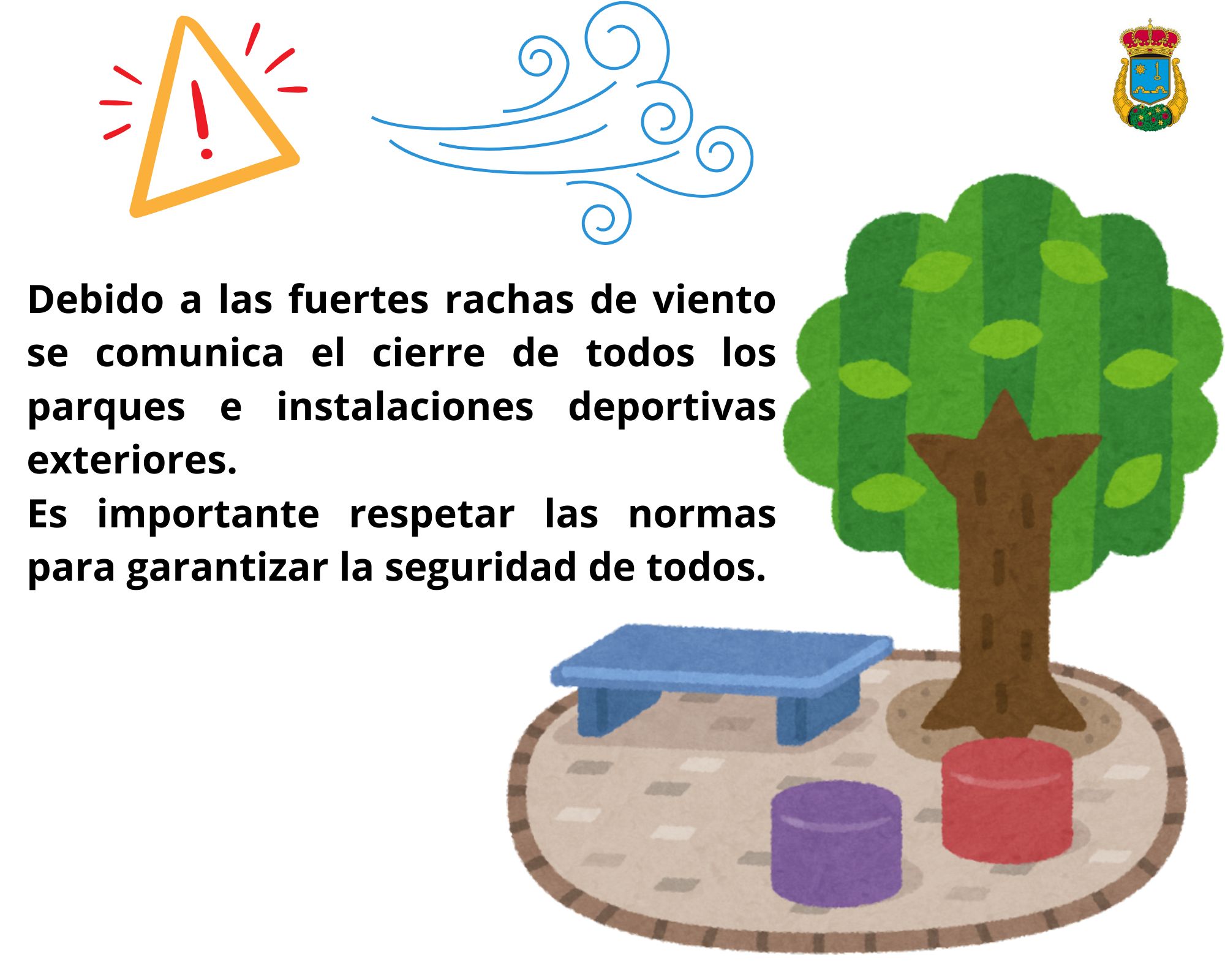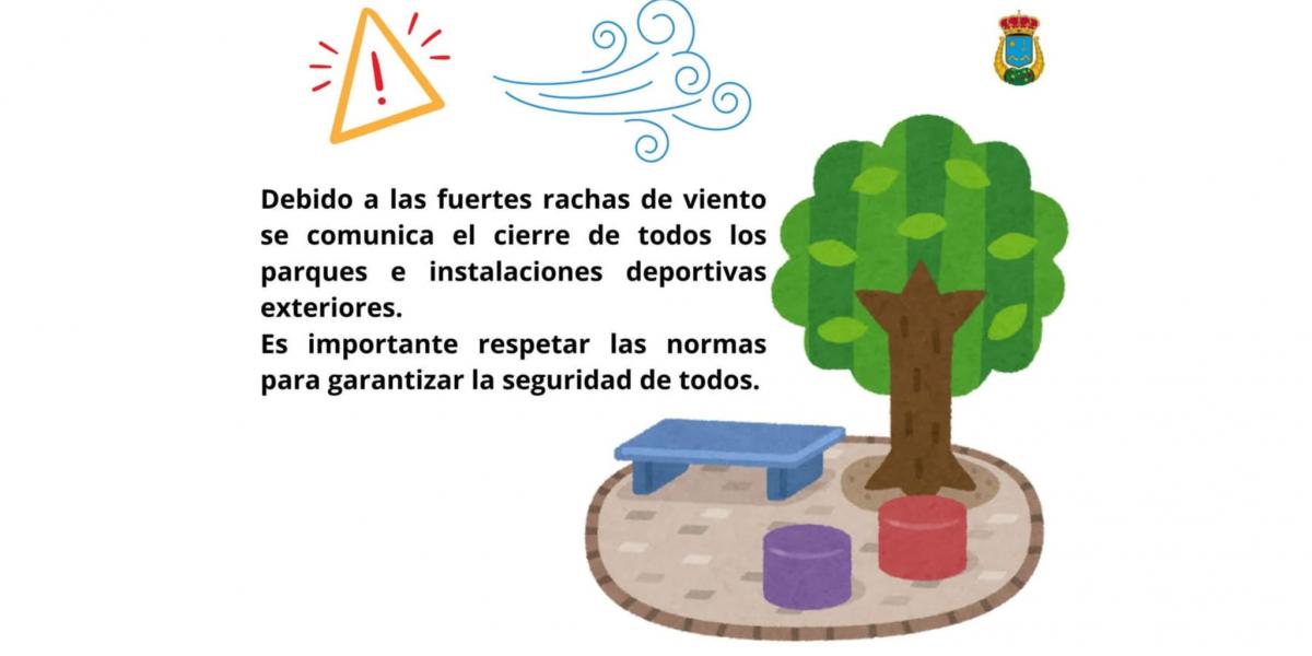 Debido a los fuertes vientos, quedan cerrados los parques e instalaciones deportivas al aire libre para garantizar la seguridad de todos y todas.