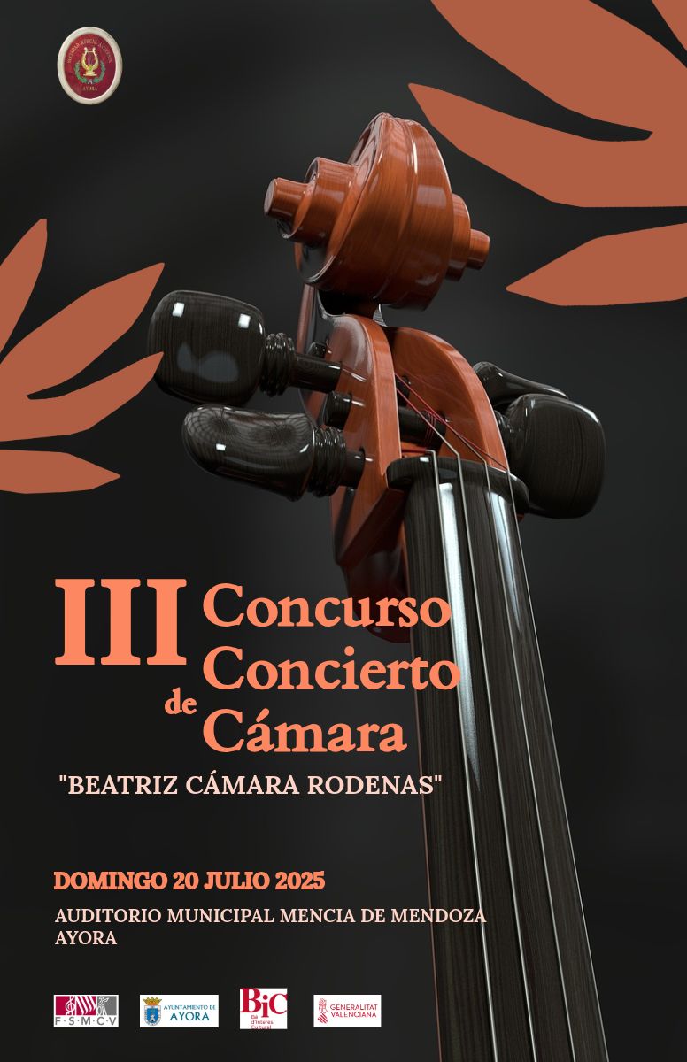 El próximo domingo 20 de julio, en el Auditorio Municipal «Mencía de Mendoza» de Ayora, tendrá lugar la tercera edición del Concurso Concierto de Cámara «Beatriz Cámara Rodenas».