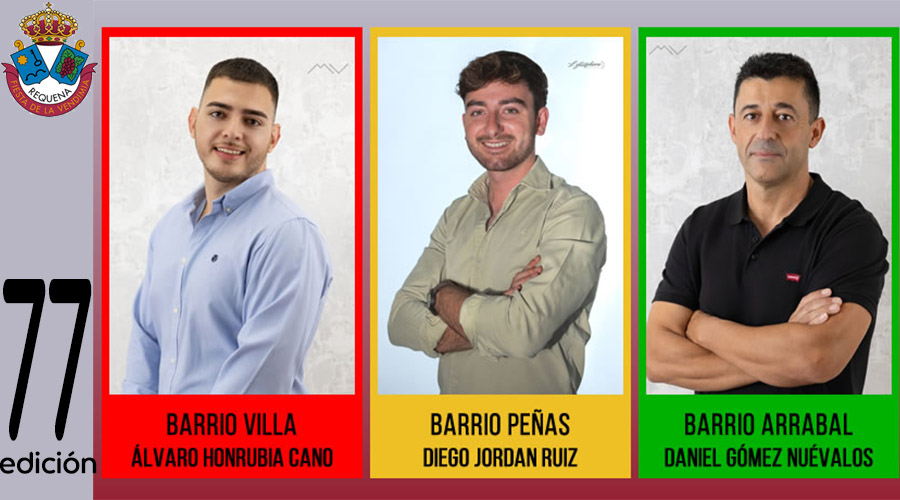 En Requena, a 15 de septiembre de 2025, la Comisión Central de la LXXVII edición de la Fiesta de la Vendimia, presidida por Nacho Pérez García, acuerda el nombramiento de las siguientes personas como Presidentes de Barrio:
