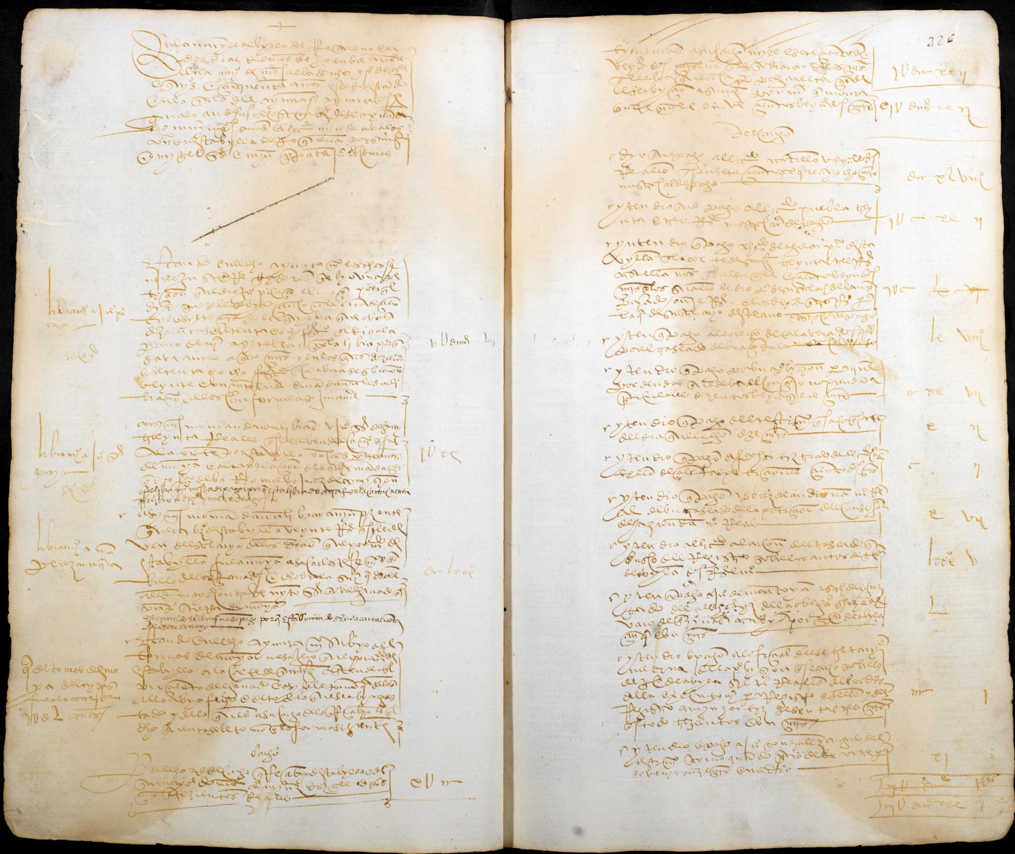 Por ejemplo, de un acuerdo concejil de 1548 observamos la cuenta de gastos que el regidor Cristóbal Hernández presentó de su viaje a la corte para tratar asuntos de la Villa. Tras la expresión en letra de la cuantía de cada gasto en maravedíes como unidad de cuenta, al margen derecho del acuerdo para realizar la contabilidad se utilizan los números romanos hasta dar un total de IIIUDCCCXVI (3.816 maravedíes), observando la utilización del calderón (U) que indica que hay que multiplicar por mil los valores que están a la izquierda.