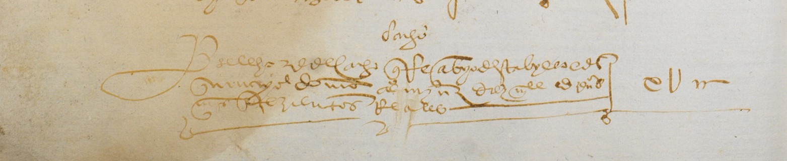 En la cuenta de propios y arbitrios del Concejo de Requena de 1573-1574 reflejamos algunos de los ingresos del Concejo de Requena por concepto de dehesas, ardales, hornos, puente de Pajazo y otros. Aquí el símbolo mil del calderón se representa como U, por ejemplo en el ingreso del horno de Camporrobles IXU (9.000 maravedíes). Tampoco se emplea el sistema sustractivo y del arriendo del estiércol se ingresan IIIIUDCLXXXV (4.685 maravedíes) donde IIII equivale a IV. O en las cuentas de 1592-1593 los ingresos alcanzan los 480.484 maravedíes representados como CCCCLXXXUCCCCLXXXIIII, donde por dos veces CCCC equivale a CD y IIII a IV.