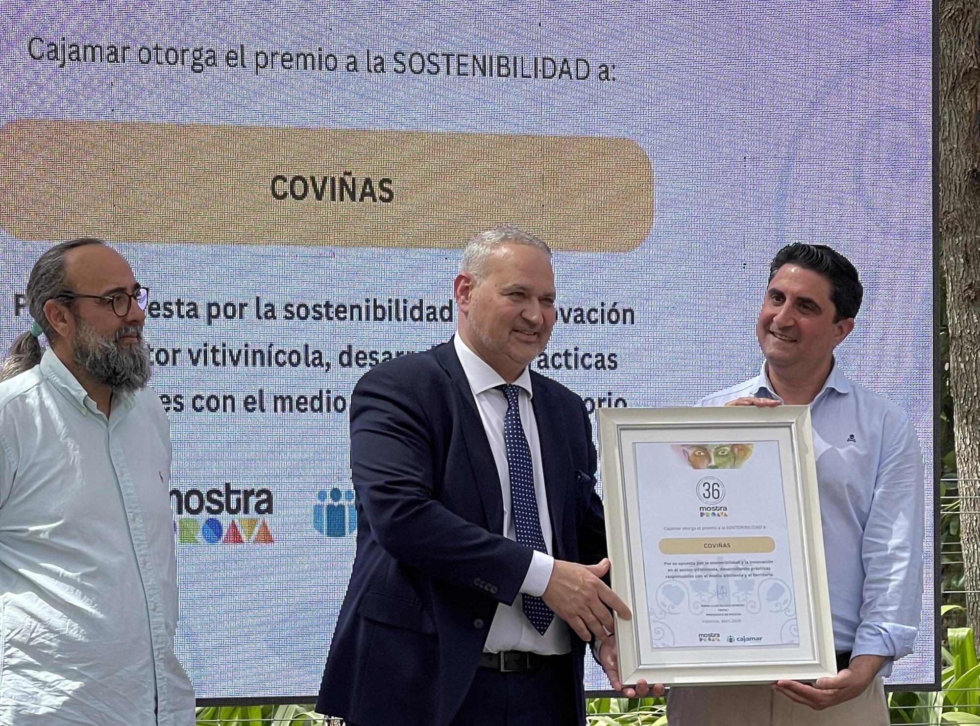 El firme compromiso de Coviñas con la sostenibilidad, el territorio y su gente, también ha sido reconocido en la Mostra con el Premio Cajamar a la Sostenibilidad. Consolidada como motor socioeconómico de la comarca Requena-Utiel, la bodega representa a más de 3.000 familias de viticultores que trabajan en equilibrio y armonía con la naturaleza. Con un enfoque que apuesta por adaptar su actividad a la evolución del cambio climático y reducir su huella de carbono, la bodega desarrolla prácticas sostenibles en todas las áreas de actividad (viticultura, elaboración, comercialización y distribución), implementando programas que contribuyen a regenerar y mejorar su entorno. “Somos garantes de un legado que queremos transmitir a las próximas generaciones. La sostenibilidad de nuestros viñedos, algunos centenarios, y el futuro de nuestros agricultores, marcan nuestra hoja de ruta”, ha señalado el director general de Coviñas, Jorge Srougi.