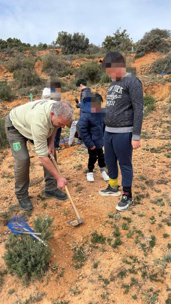Los jóvenes continuaron la actividad plantando árboles en dos parajes locales, después de recargar energías con un estupendo almuerzo que, como cada año, preparó el M.I. Ayuntamiento en reconocimiento a su valiosa labor en favor del medio ambiente.
