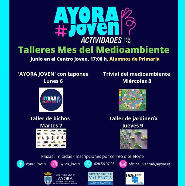 Es necesario inscribirse con un correo a oficinajuventud@ayora.es o llamando al 628 56 07 03, ya que las plazas son limitadas.