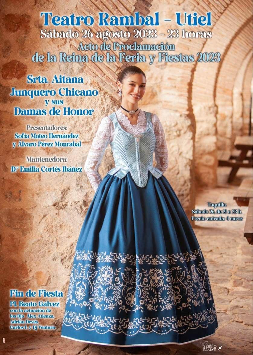 El Acto de Proclamación se llevará a cabo el Sábado 26 de agosto a las 23 horas en el Teatro Rambal de Utiel.