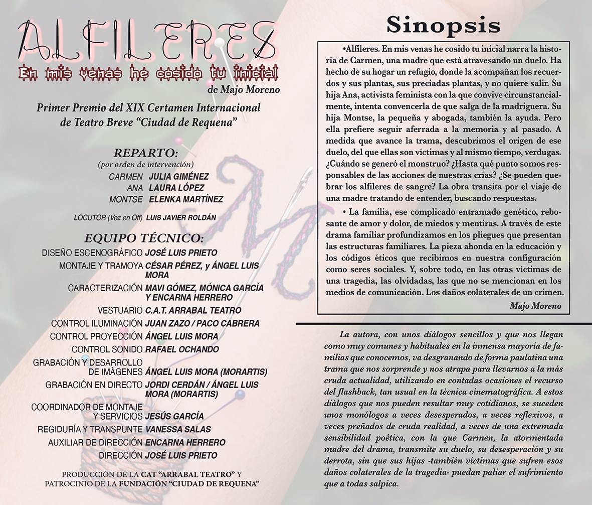 «Alfileres. En mis venas he cosido tu inicial», 1er. Premio del XIX Certamen Internacional de Teatro Ciudad de Requena