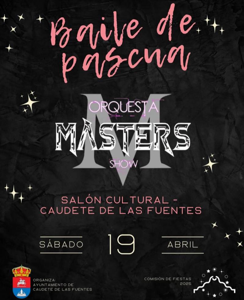 El próximo sábado, 19 de abril, a las 00:30 h, en el Salón Cultural del municipio de Caudete de las Fuentes, Baile de Pascua con la orquesta Masters