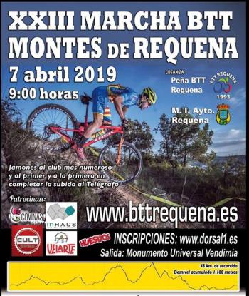 Ya está todo preparado para la XXIII Marcha BTT Montes de Requena. Será el 7 de abril de 2019 a las 9:00h desde el Monumento Universal a la Vendimia de Requena.