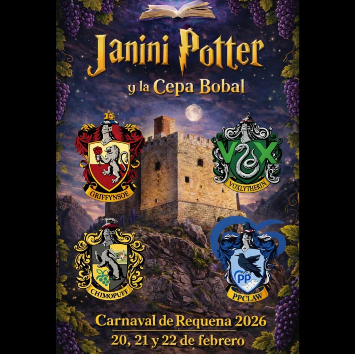 El Carnaval de Requena 2026 calienta motores y promete convertir el fin de semana del 20, 21 y 22 de febrero en el más esperado del año. Bajo el lema “Janini Potter y la Cepa Bobal”, la edición de este año llenará de color y creatividad cada rincón de Requena.