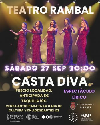 CASTA DIVA es un concierto-espectáculo creado, producido y distribuido por Camerata Lírica, donde cinco reconocidas cantantes líricas de primer nivel abordan las más importantes arias y dúos de ópera, así como espectaculares canciones melódicas modernas.