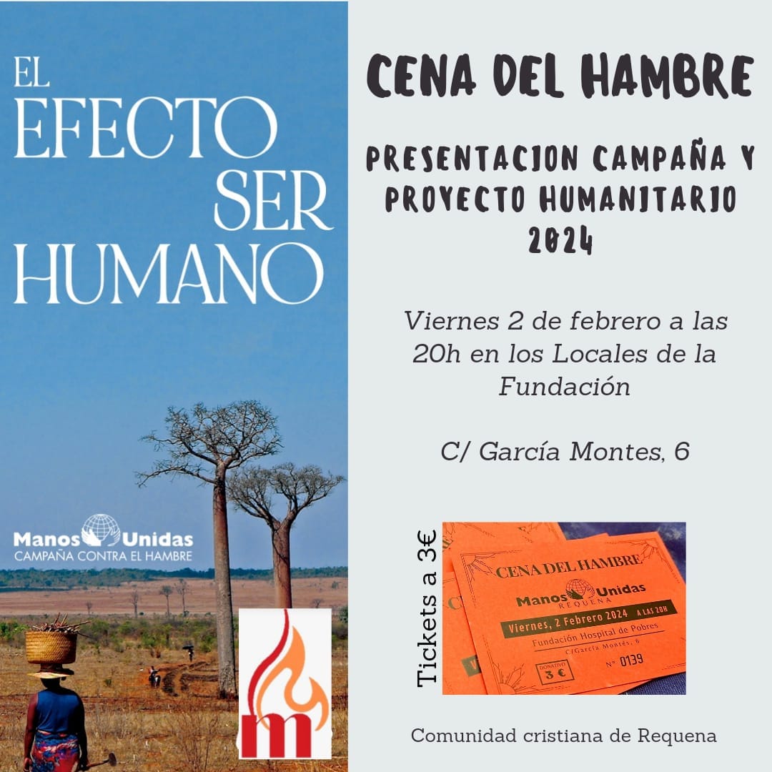 El viernes a las 20h tienes una cita en la Fundación de la Comunidad Cristiana de Requena para la Cena del Hambre en colaboración con Manos Unidas.