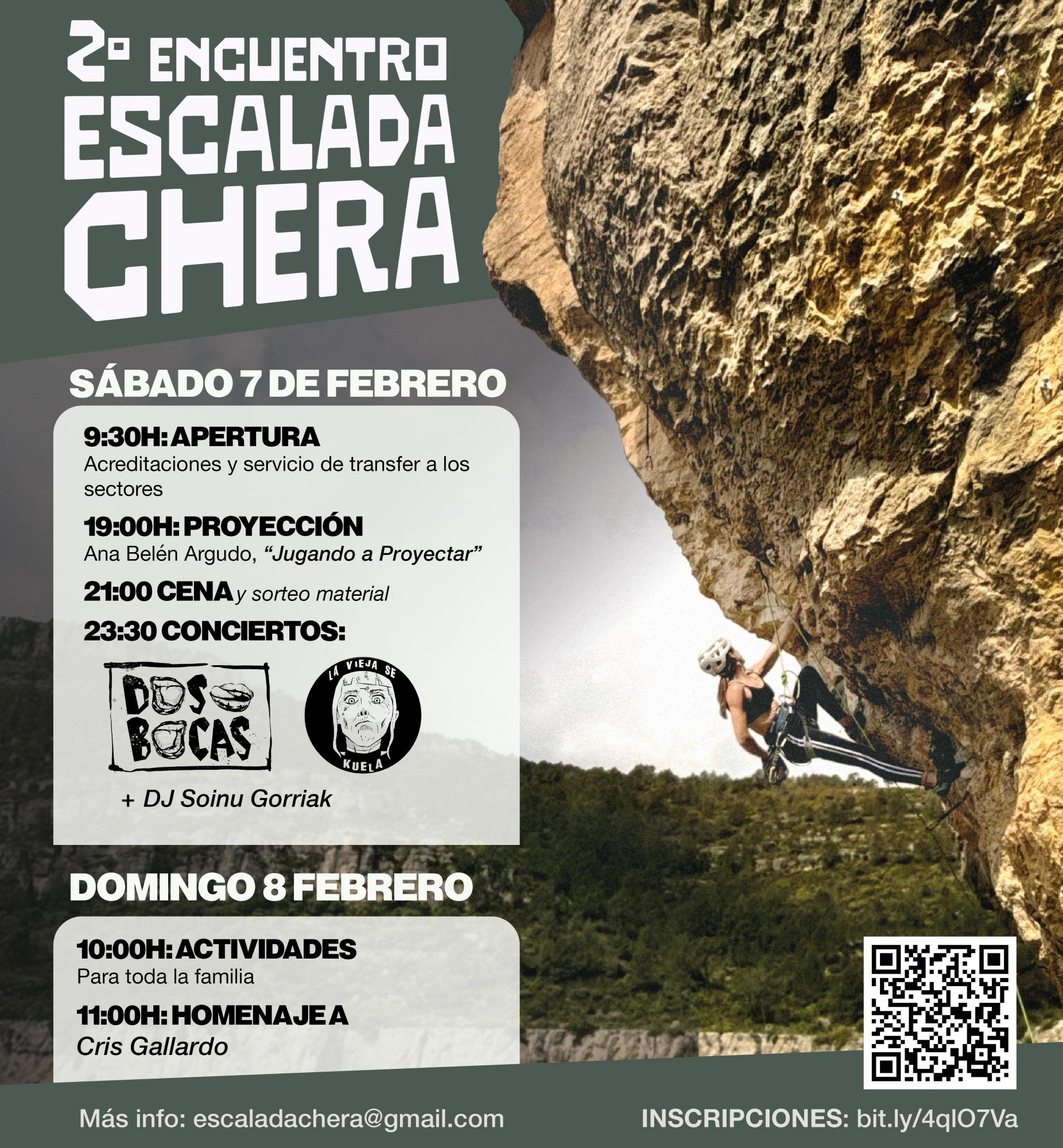 Tras el éxito de su primera edición, el municipio de Chera se prepara para acoger el II Encuentro de Escalada Chera los próximos días 7 y 8 de febrero. Esta quedada nace con el objetivo de consolidar a la localidad como un referente del deporte vertical en la escena valenciana, poniendo en valor sus paisajes espectaculares y la calidad de su roca.