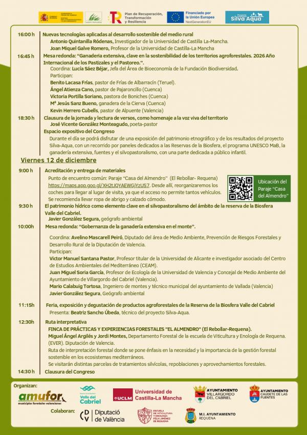 16:45 Mesa redonda: Ganadería extensiva, clave en la sostenibilidad de los territorios agroforestales. 2026 Año Internacional de los Pastizales y el Pastoreo.