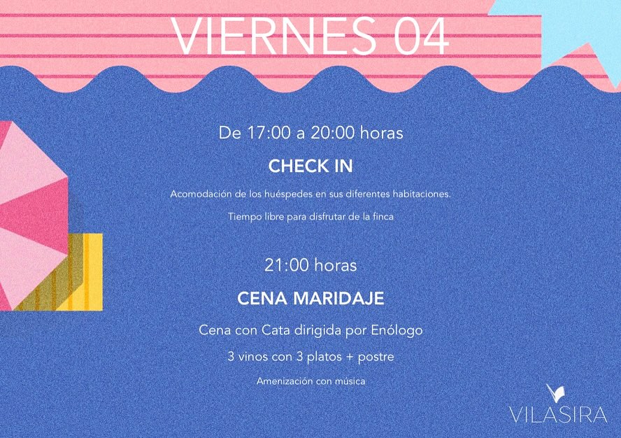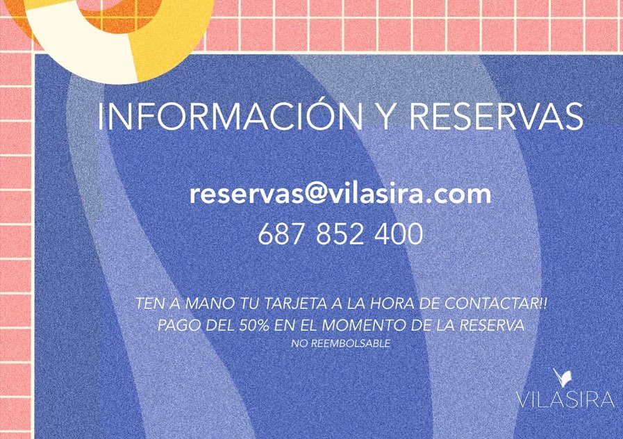 Más información y reservas en : 687852400 ó en reservas@vilasira.com