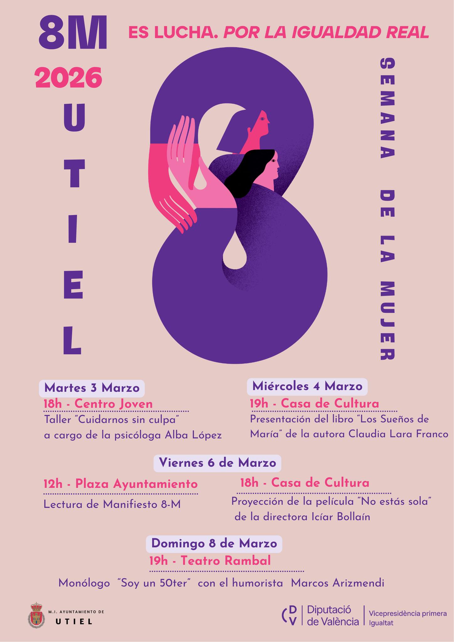 El Ayuntamiento de Utiel se adhiere a la campaña 8M de la Diputación de Valencia » 8M : Es lucha. Por la igualdad real» y prepara programación especial con charlas, talleres y espectáculos para conmemorar el Día Internacional de la Mujer.
