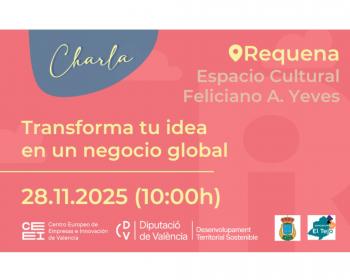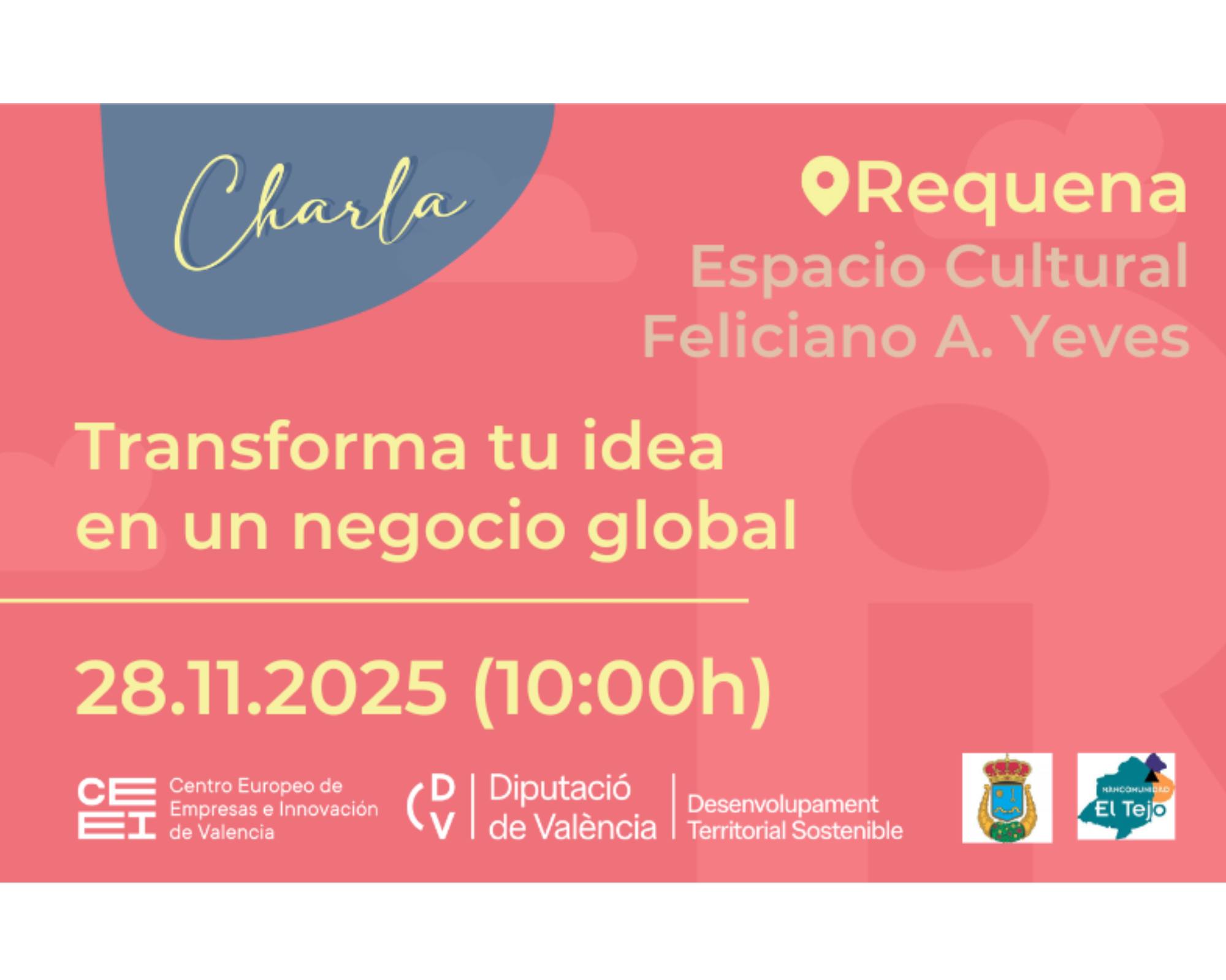 Desde el Ayuntamiento de Requena informan de que el próximo viernes, 28 de noviembre, de 10 a 11:30 h, tendrá lugar la sesión “Emprender en lo Rural: Innovación, Oportunidades y Futuro” en el Espacio Cultura Feliciano A. Yeves (Avenida Arrabal, 9).