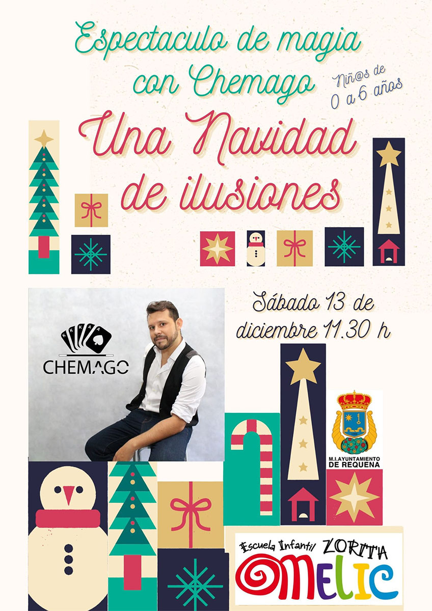 El próximo sábado 13 de diciembre a las 11.30, tendrá lugar en la Escuela Infantil Municipal Zorita un espectáculo de magia para niños y niñas hasta 6 años de edad: Una Navidad de Ilusiones. La entrada al evento es libre y gratuita.