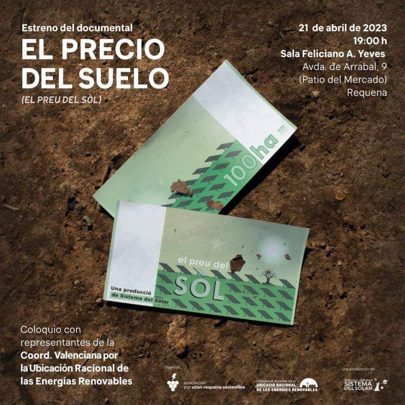 El viernes 21 de abril, en la sala cultural Feliciano A. Yeves, la asociación Utiel-Requena Sostenible estrenará el documental «El precio del suelo».