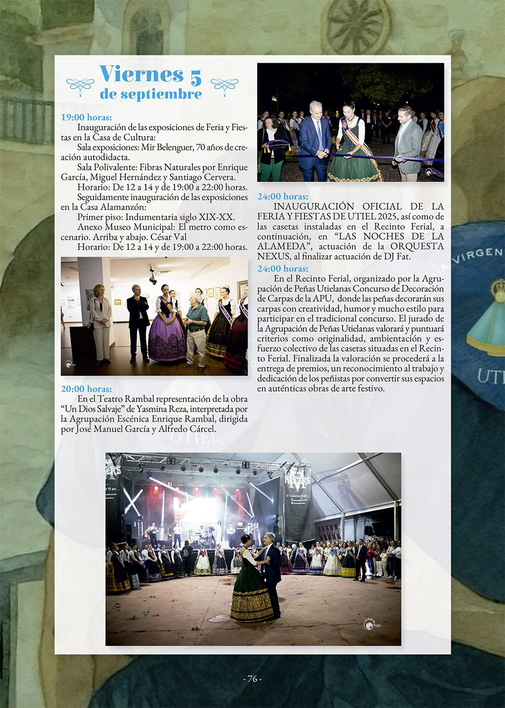 Feria y Fiestas de Utiel 2025 : Libro y programación de festejos
