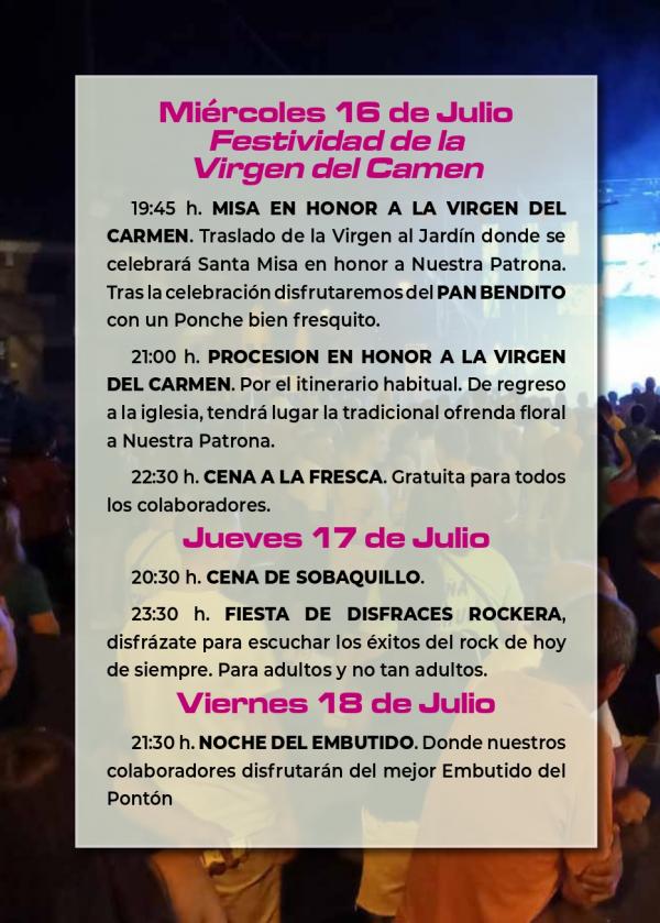 PROGRAMACIÓN DE FIESTAS EN HONOR A LA VIRGEN DEL CARMEN