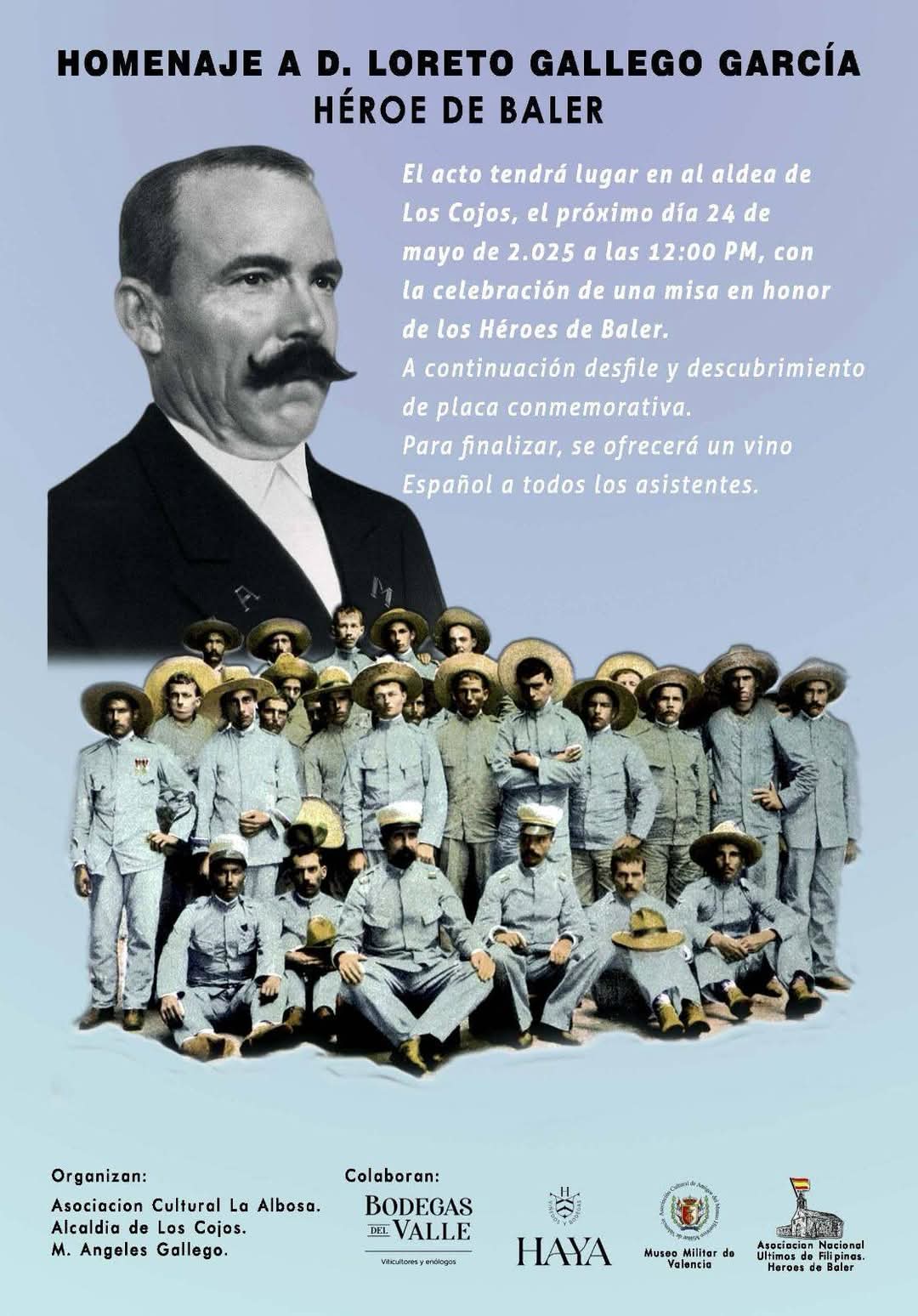 El próximo 24 de mayo, a las 12 h, se hará un homenaje al héroe rural requenense Loreto Gallego, que era de la pedanía de los Cojos y fue uno de los 33 de Baler, así como a todos los demás de “Los últimos de Filipinas”