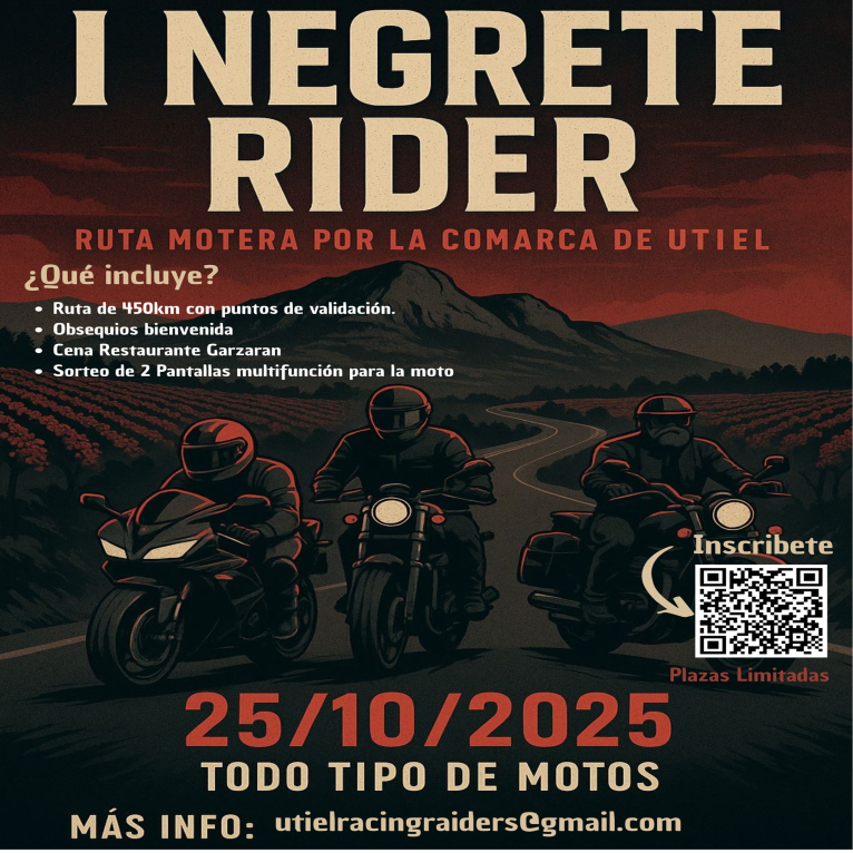 Las Asociación Utiel Racing Riders organiza el próximo sábado 25 de octubre la I Negrete Rider .