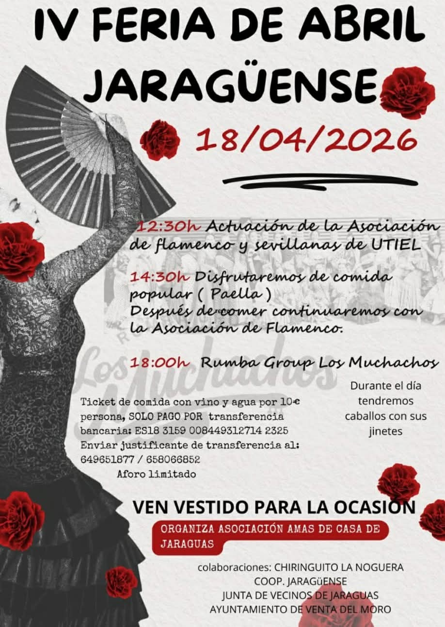 La pedanía venturreña de Jaraguas celebrará el próximo 18 de abril de 2026 la IV Feria de Abril Jaragüense, una jornada festiva que combinará tradición, música y gastronomía.
