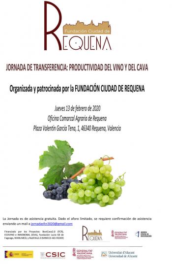 - 12:50 – 13:20 Proyecto: Análisis ómicos (estilbenos, polifenoles y proteínas) en cavas de Requena: Dr. Roque Bru, Universidad de Alicante