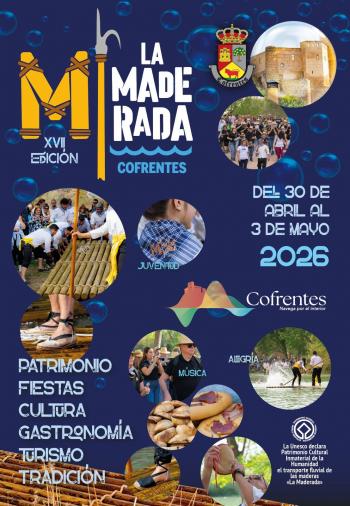 Del 30 de abril al 3 de mayo de 2026, Cofrentes acoge una nueva edición de La Maderada, una de sus celebraciones más emblemáticas, que alcanza ya su XVII edición.